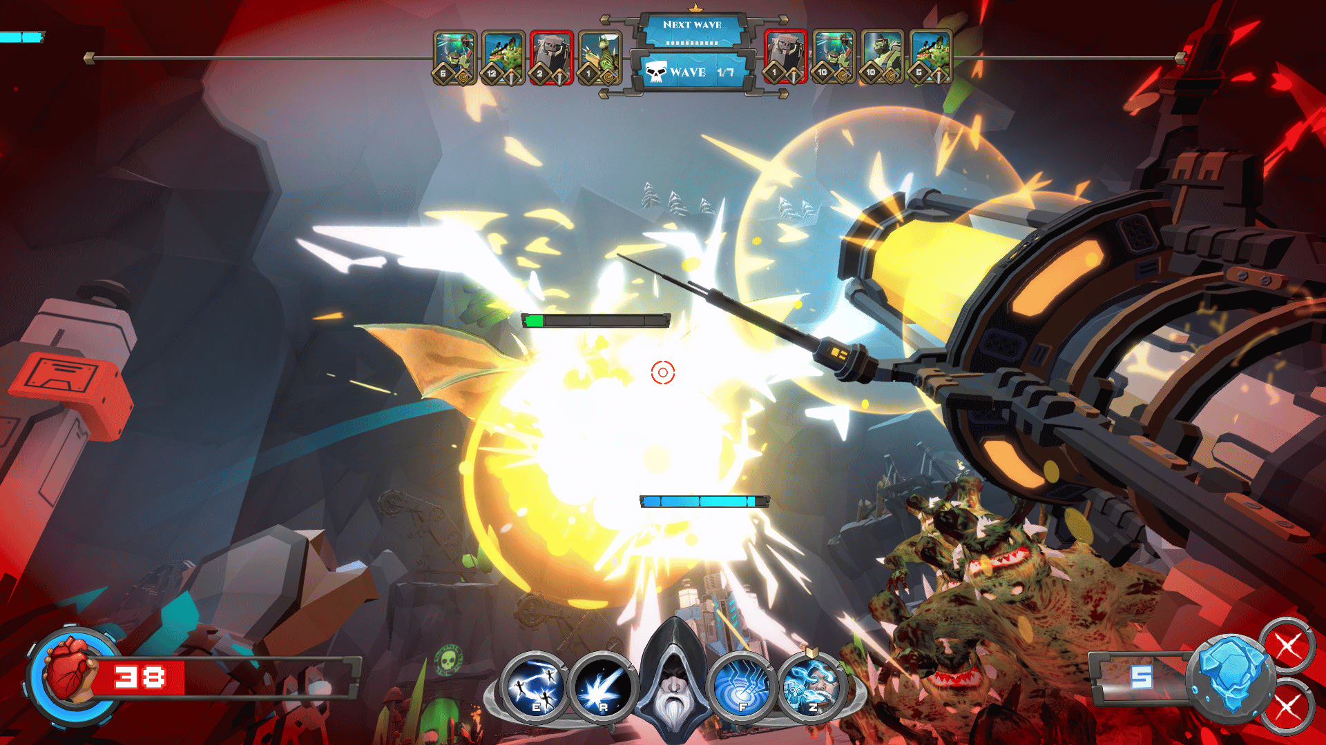 Fight your way through countless enemy waves in this story driven mix of First Person Shooter and Tower Defense. Bring death to various creatures in different worlds. Kill, collect crystals, level-up, die and revive again.