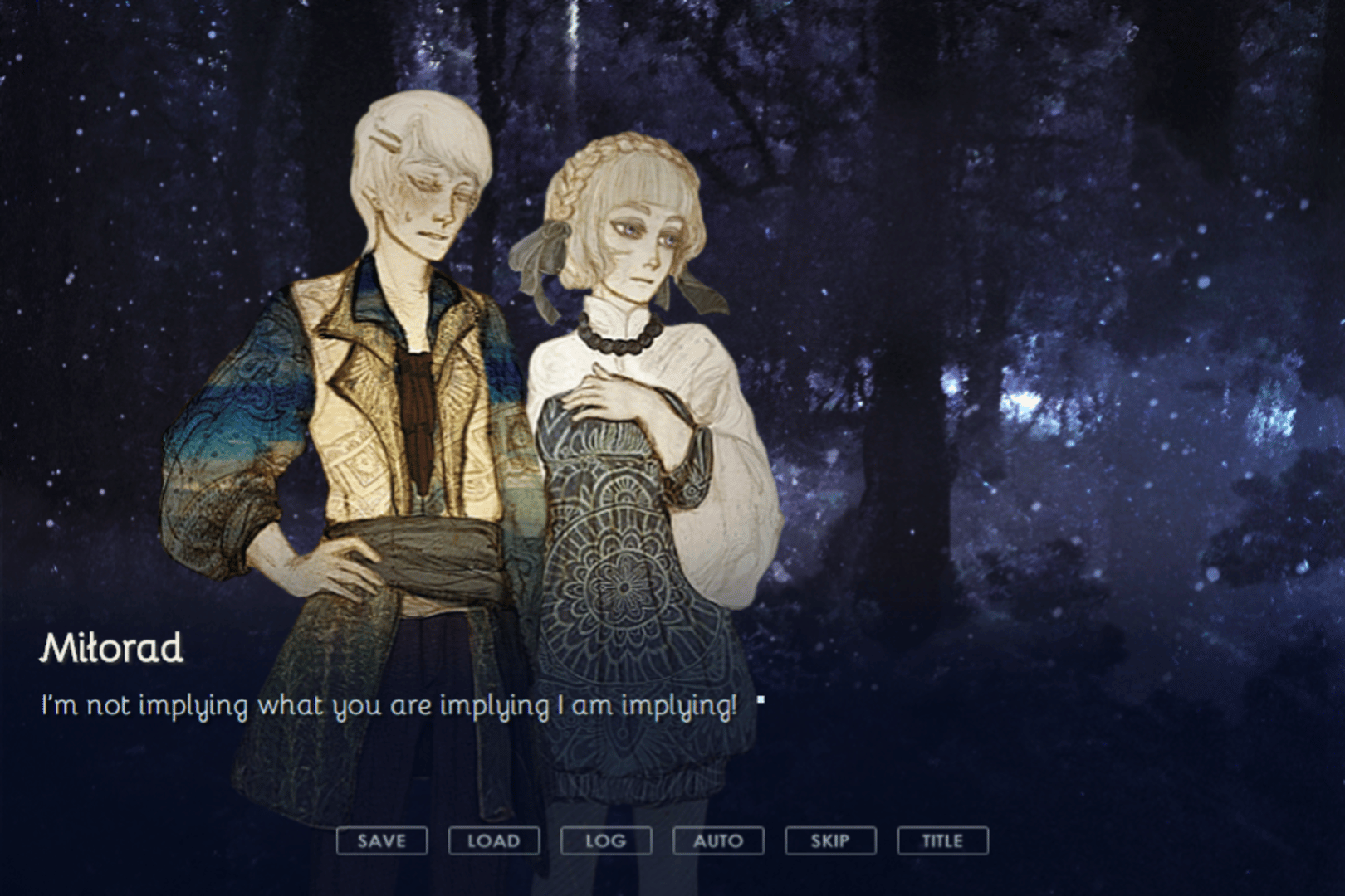 A short visual novel inspired by Slavic mythology set in a present world where monotheistic religions never existed and everyone still worships the old gods. Two romantic options are present and the game includes a glossary of terms.