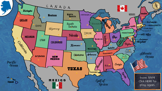 An educational game to make learning the name, location, and capitol of the fifty states of the Unites States of America fun.