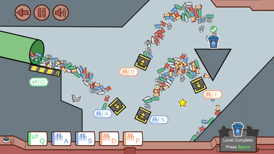 A casual game in which you operate various machines to deliver garbage to the garbage station. Control various machinery through keyboard or mouse clicks to transport garbage to the garbage station. You can also challenge to collect stars and sea lions. A total of 20 well-designed levels.