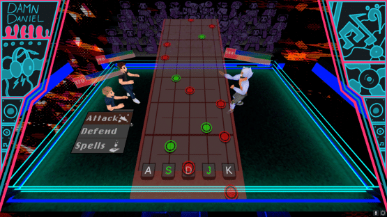 Damn Daniel: White Vans Adventure is an urban stylized rhythm game RPG, based on the titular character, Damn Daniel! Daniel was invited to the Ellen show. While Daniel was asleep, his evil twin cousin Dark Daniel stole his white Vans! Now he must catch Dark Daniel before he gets on Ellen, and throws the whole world into Damnation with the power of the white Vans!