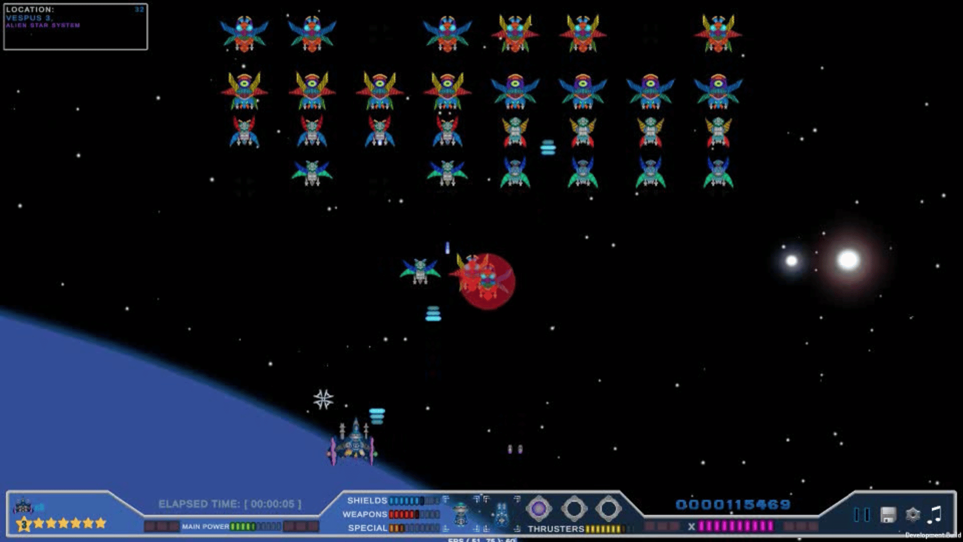 An unknown Alien Race has launched a failed attack on Earth Station Alpha and are regrouping! Fight off the incoming fleets, discover where their ships are being constructed, and launch an assault! If Earth Station Alpha is destroyed, the planet will be lost and humanity exterminated.
