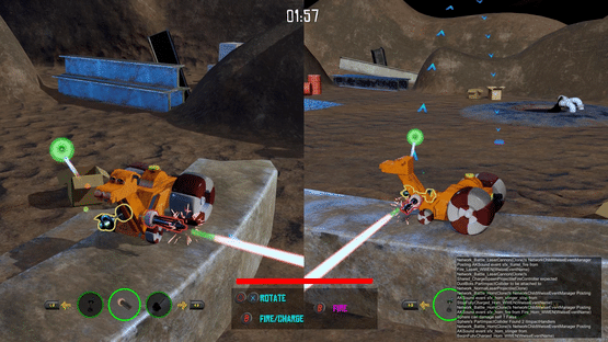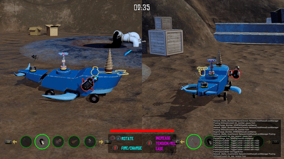 Grab a friend and build your very own battle bot. Add weapons to you bot and take your creation into battle against another team in online combat. Communicate with your partner to control your bot. You both control every part but each part has had their controls split between the both of you.