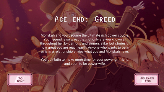 You've studied latin for a few months and you accidentally read a passage from your textbook which lands you in a demon speed dating bar. Unsure of how to get home, you decide to ride it out and see how things go. Maybe you'll even find a date! Or maybe you'll find death? Who knows...