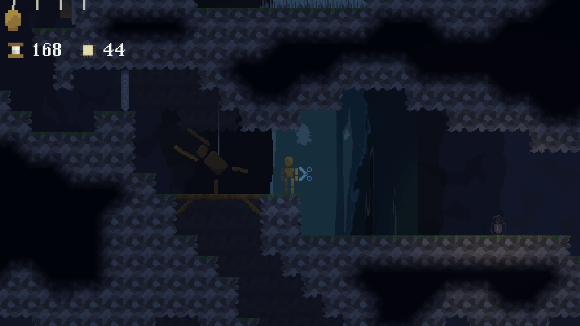A puppet themed platformer metroidvania with a focus on platforming rather than combat. Throw your crystal scissors into walls to create your own platforms, explore a twisting and mysterious land, and solve puzzles on a worldwide scale.