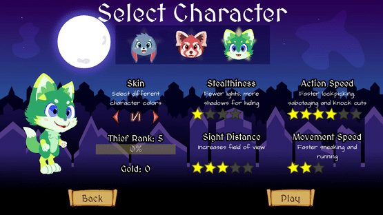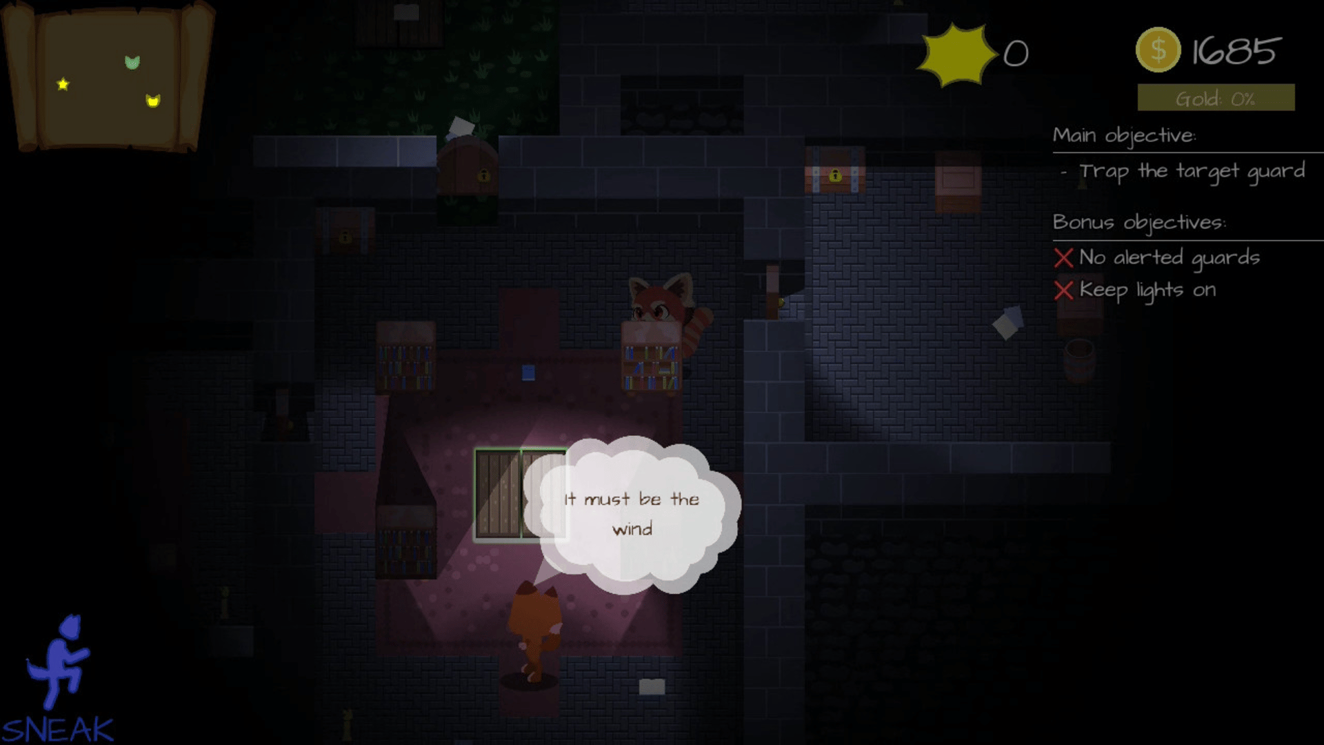 You're a master thief in this ambient furry stealth game. You sneak past any guard, pick any lock, break into and steal from any secured building. Guards see, hear, speak and chase. Observe and prepare the best plan. Ghost unseen in shadows, distract, stalk, trap or knock out and hide guards.