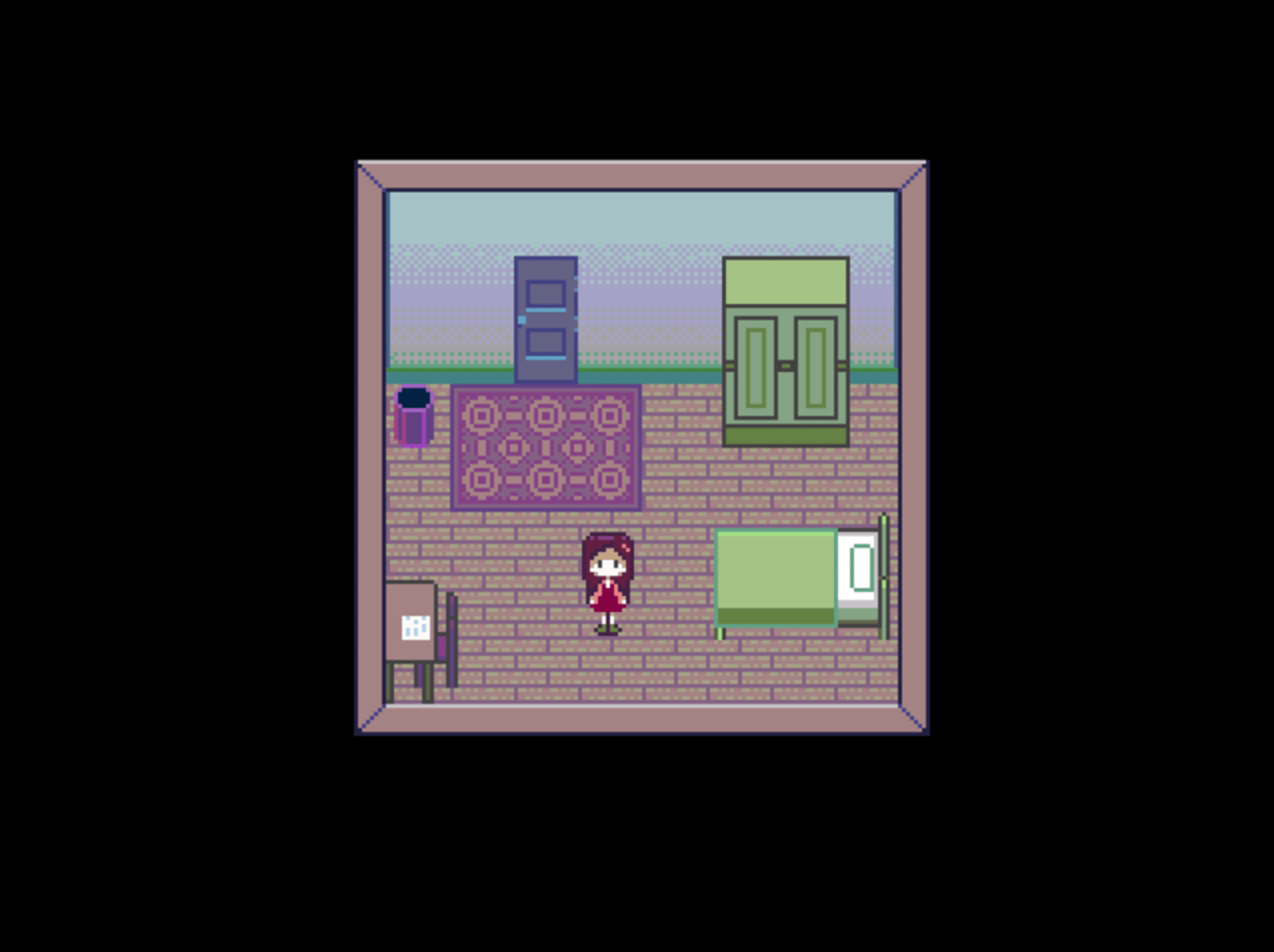 No Outlet is a Yume Nikki fangame that was created for the 2017 Dream Diary Jam. You play as Mint, a young lady who uses her bedroom cabinet to wander around in other people's dream worlds collecting "spells" and disturbing private spaces.