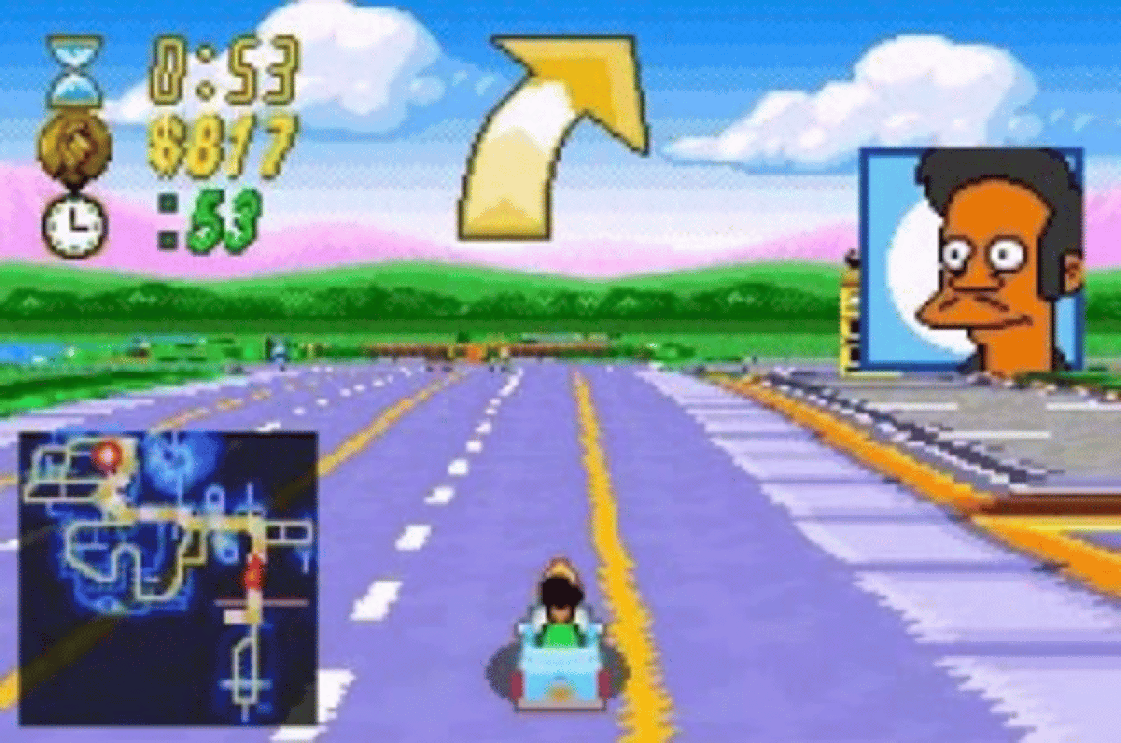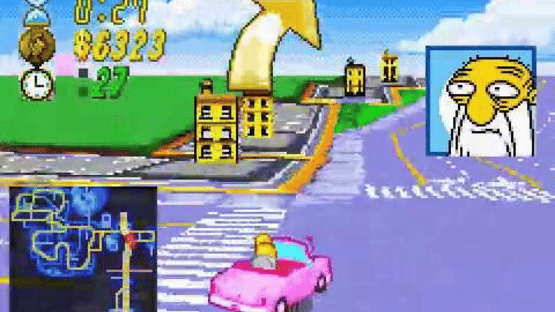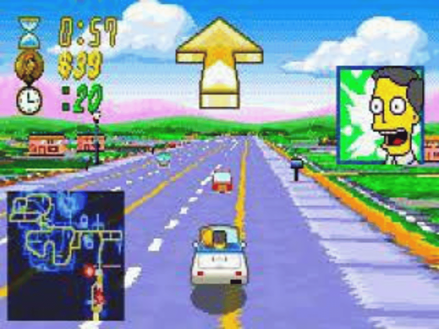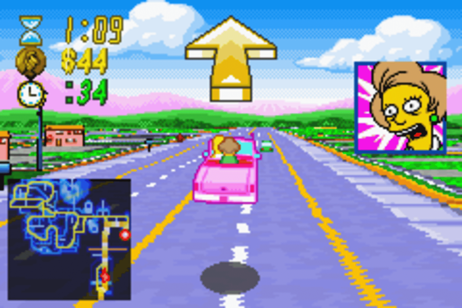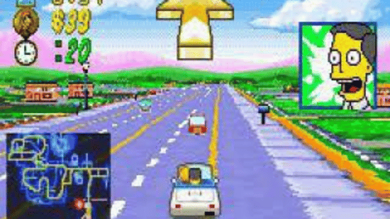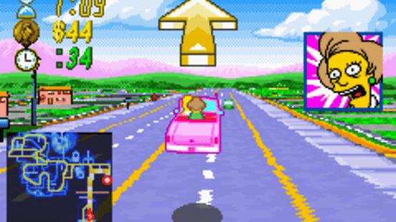 This is the Game Boy Advance version of The Simpsons: Road Rage that was first released in 2001 for PlayStation 2, Xbox and GameCube. The game is based on the animated television series The Simpsons, and is part of a series of games based on the show. The game stars Homer, Marge, Bart, and Lisa, as well as Mr. Burns and several other characters from the show. The Simpsons: Road Rage is similar to Sega's 1999 video game Crazy Taxi, in that the main objective is to drive picked up passengers to their destinations as quickly as possible. These similarities led to Sega suing Radical Entertainment and Electronic Arts for patent infringement though it was settled before going to court.