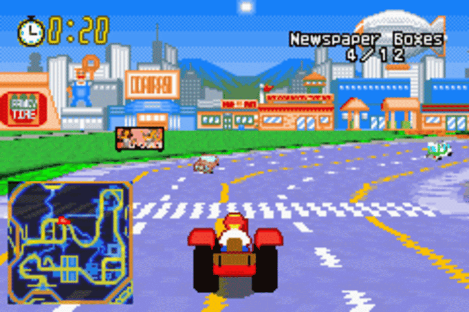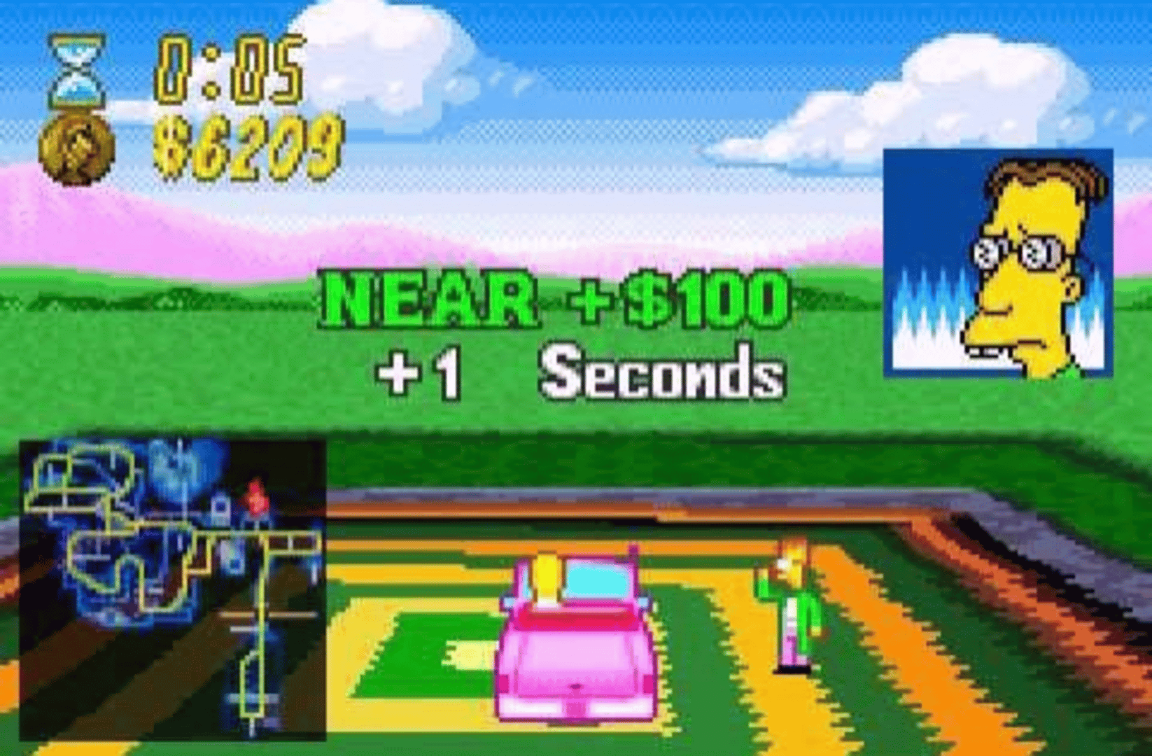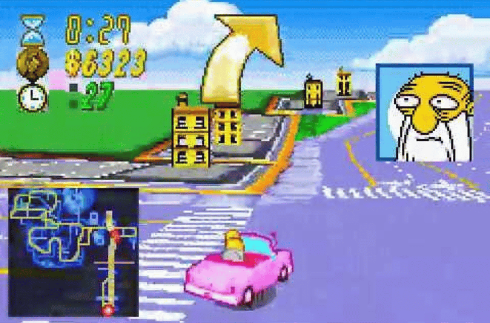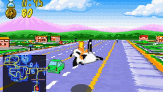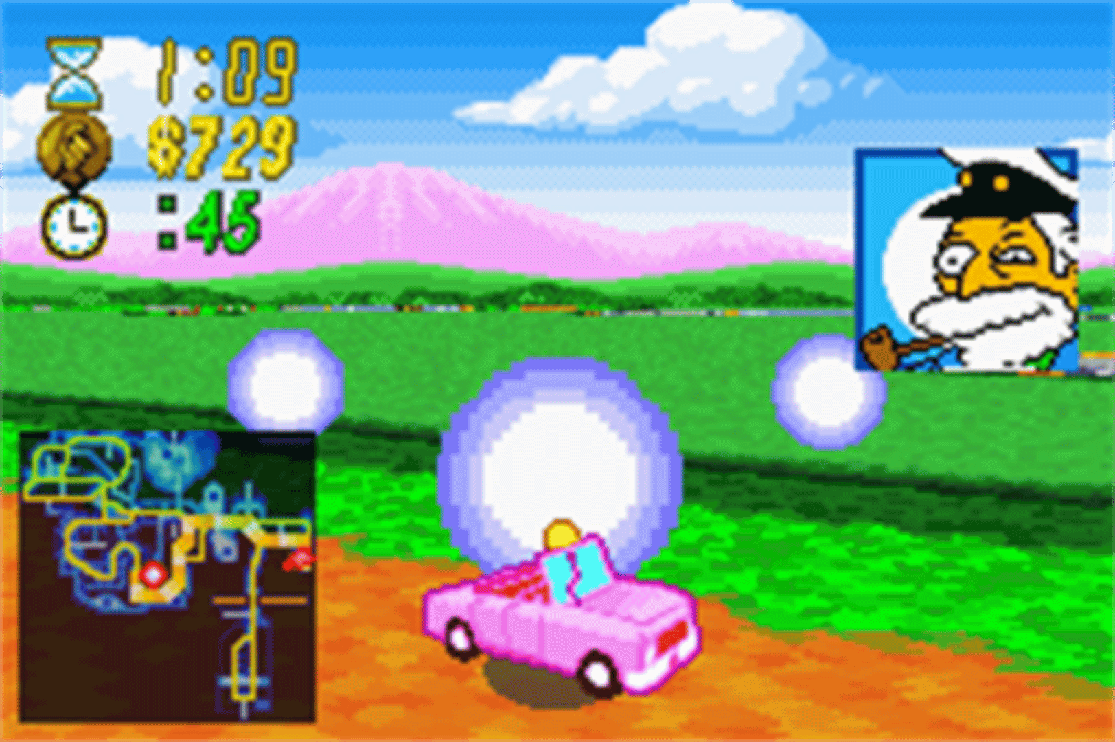 This is the Game Boy Advance version of The Simpsons: Road Rage that was first released in 2001 for PlayStation 2, Xbox and GameCube. The game is based on the animated television series The Simpsons, and is part of a series of games based on the show. The game stars Homer, Marge, Bart, and Lisa, as well as Mr. Burns and several other characters from the show. The Simpsons: Road Rage is similar to Sega's 1999 video game Crazy Taxi, in that the main objective is to drive picked up passengers to their destinations as quickly as possible. These similarities led to Sega suing Radical Entertainment and Electronic Arts for patent infringement though it was settled before going to court.