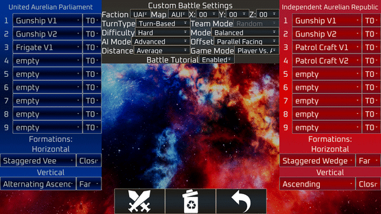 Aurelia: Stellar Arising - 3D Turn-based Fleet vs. Fleet Space Combat Game. Choose between two factions and fight for control of the Aurelia System in over 77 missions per faction. Control fleets of up to 9 ships and give maneuver and tactical commands to each ship.