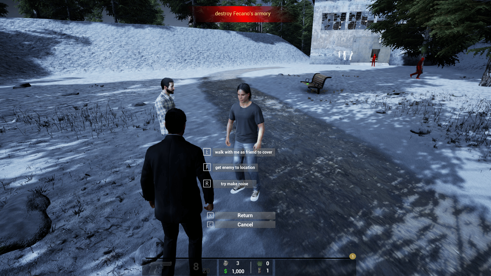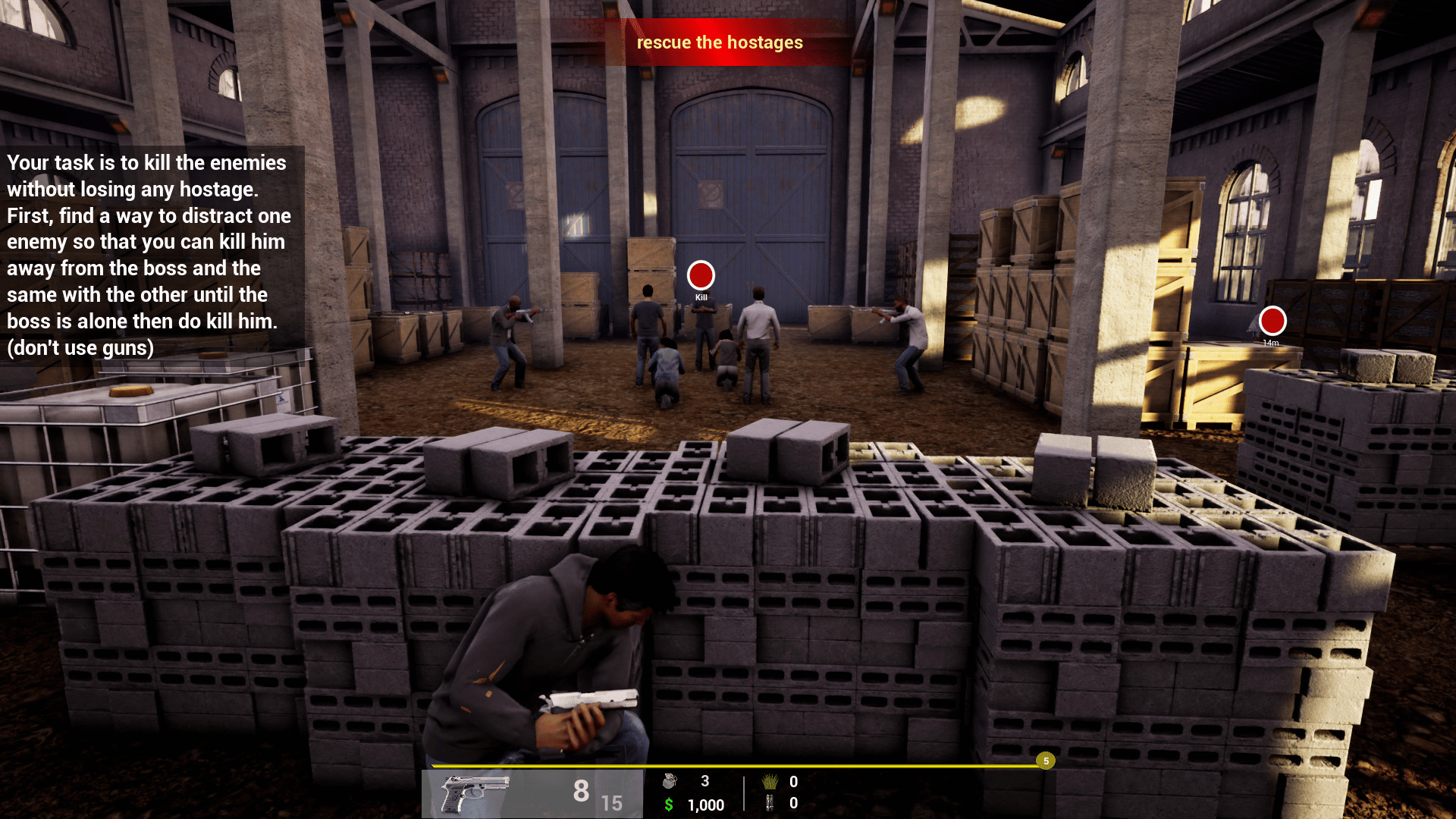 Make deals with people to identify and distract your enemies in order to eliminate them one by one and clear the areas from them until you reach their leader.