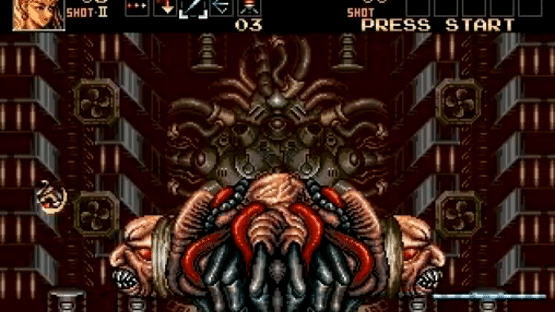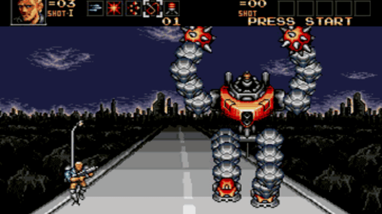 Kickin' cyborg butt... That's what it's all about, dude. Jack into this game of genetic engineering gone bad. Real bad. It's five years after the mother of all wars ended - and things still aren't right. Your job is to fix it. The ever-popular Contra series makes its Sega Genesis debut with a pulse-pounding new storyline. At 16 megs, HARD CORPS pushes the technology to bring you over ten gut-wrenching levels with huge boss characters, great graphics and dynamic sound. Find high powered weapons such as the homing gun, crush gun, needle laser or mine setter. Do you think you can handle it? Trust me, you can't. You still here? Okay, then get ready for the fight of your life. Pick one of the four heroes and begin your search across many dark levels of doom. The ending changes, depending on the paths you choose - but every pass crosses boss characters that will blow you away. Literally!