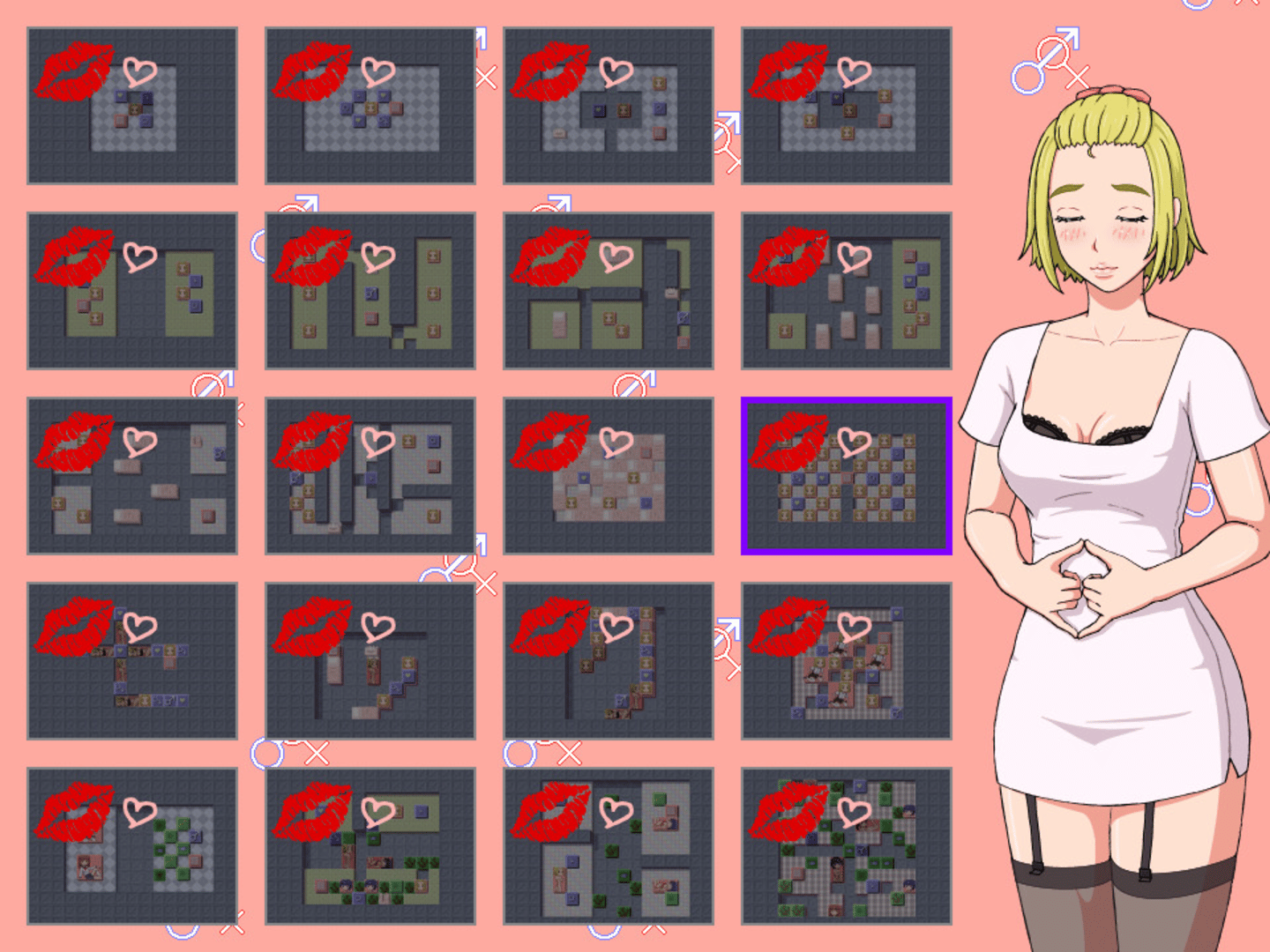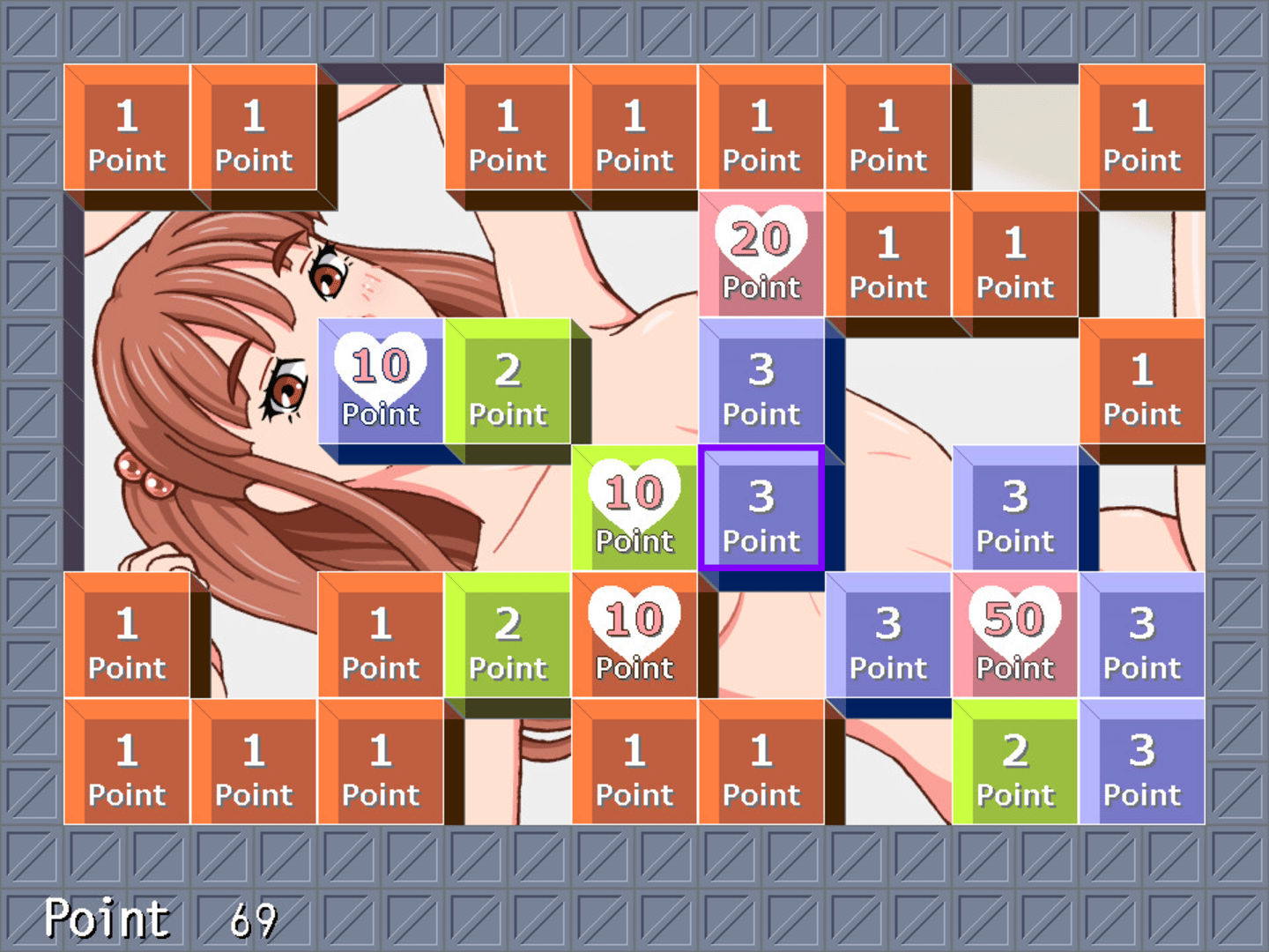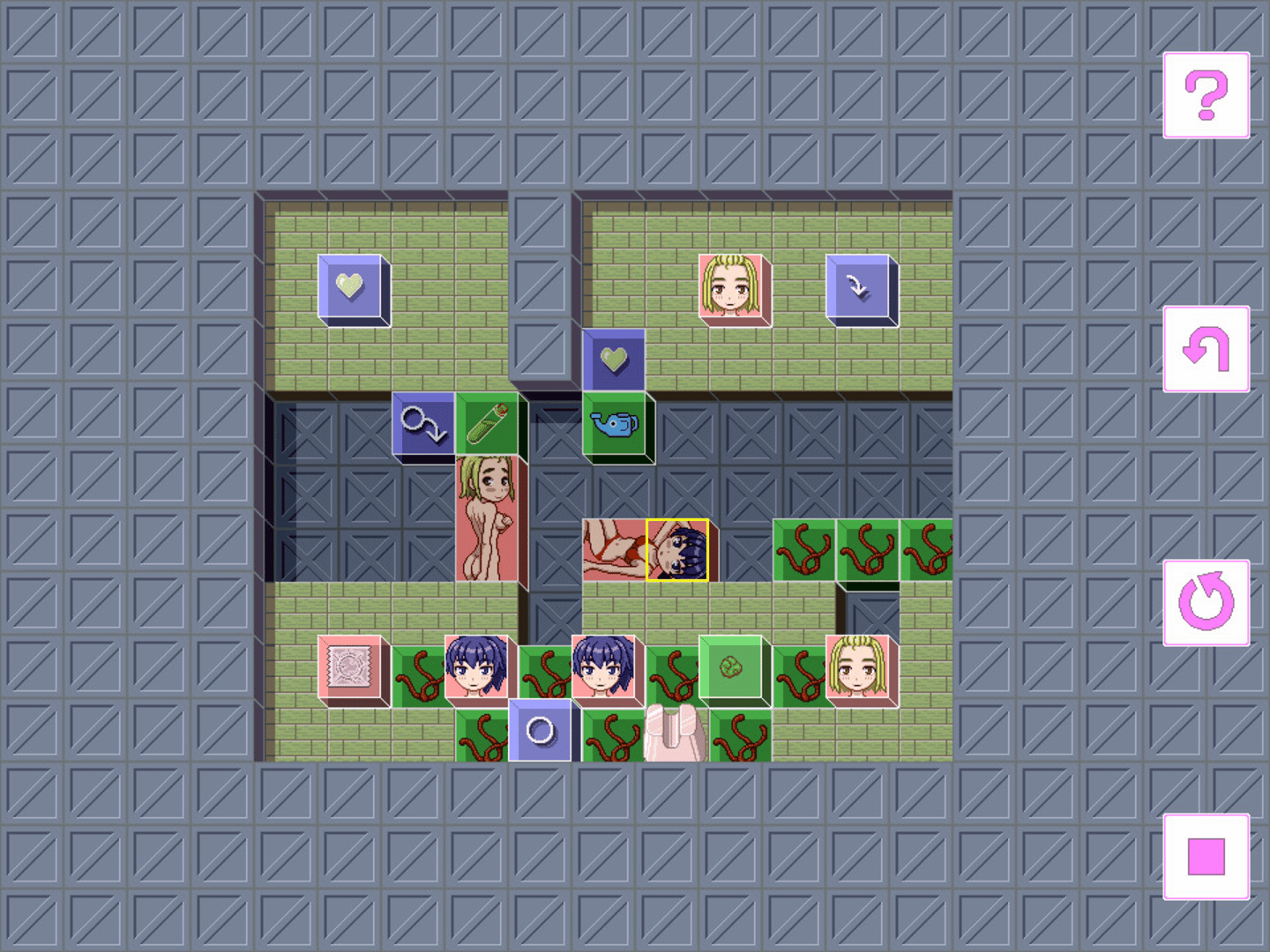 This game is a block puzzle that connects male and Female. This game includes sexual expression by pixel art. When you completed the game you will see a female nude image.