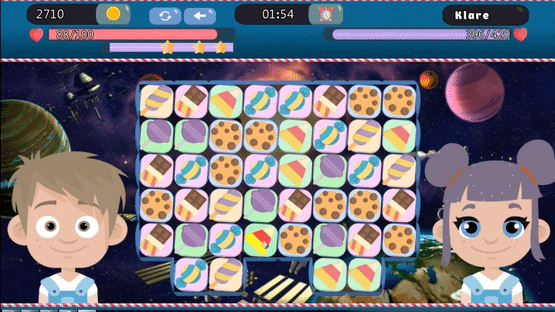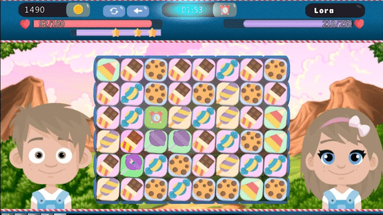 Candy Eaters Tournament is a game based on "3 in a row" mechanics. The goal of match-3 puzzles is to make groups, lines and rows of 3 or more identical tiles.
