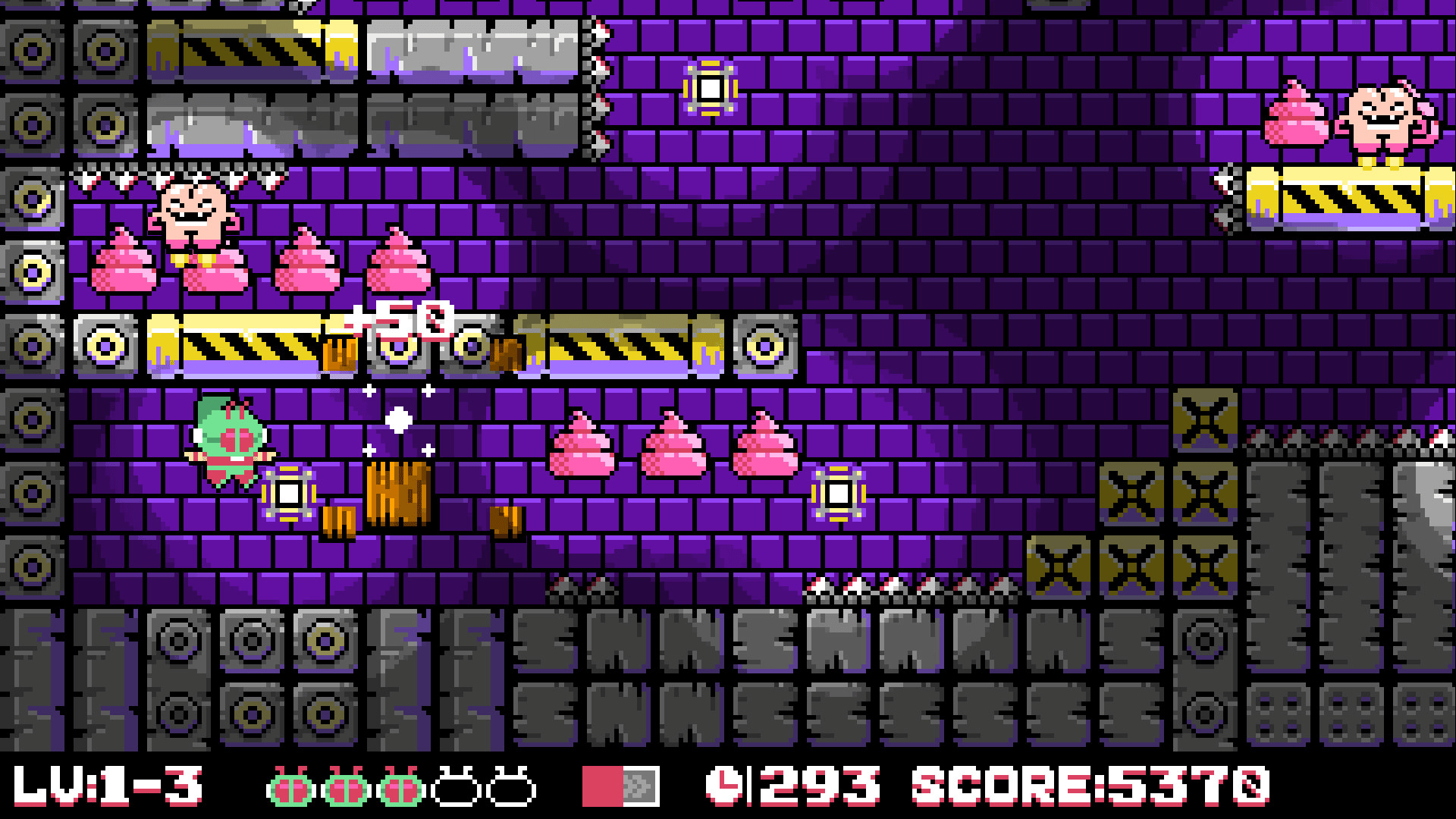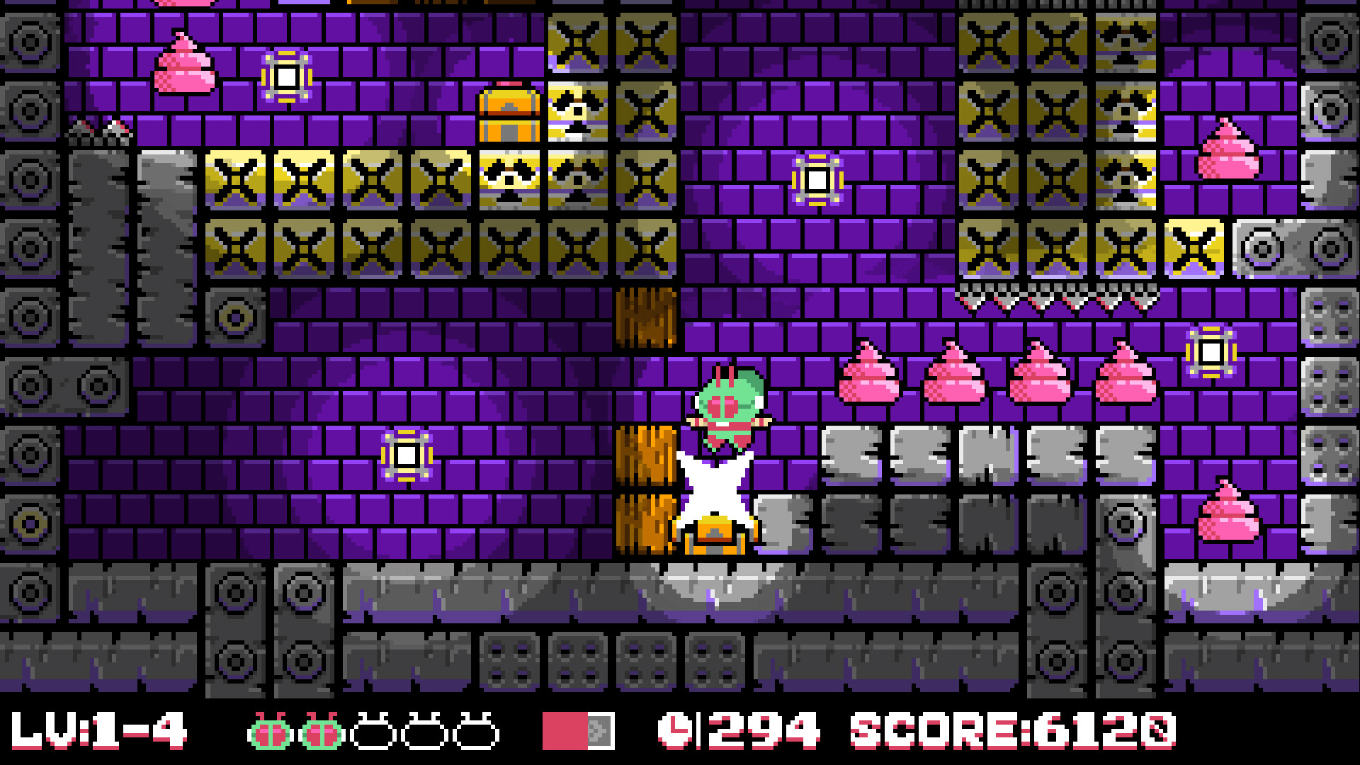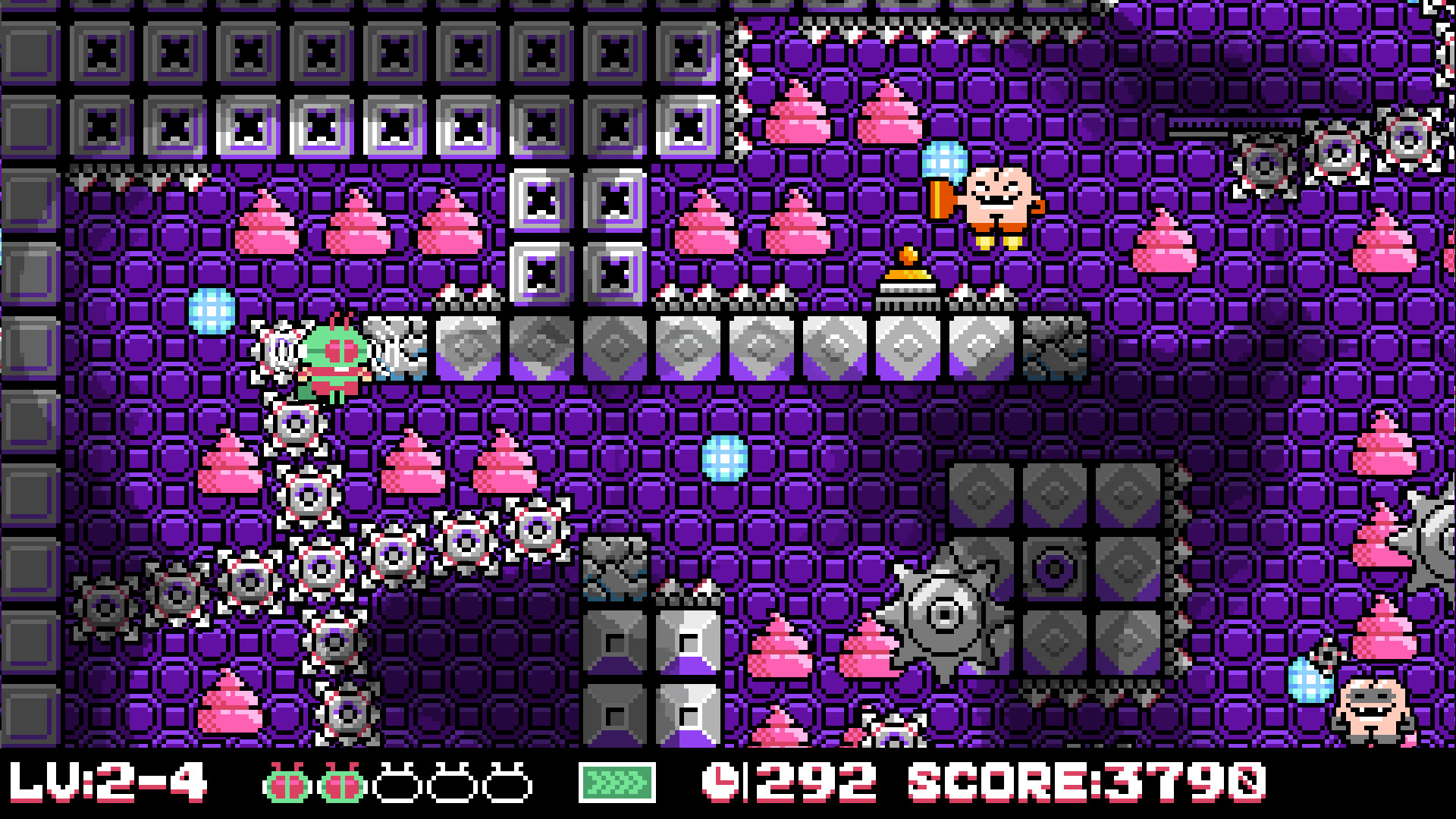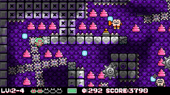 This is an NES style platformer game, fly and explore to find pink poo in the map and destroy them, which is the only condition to pass the level. You need to avoid dangerous traps, defeat the alien creature AssMan that invades the earth, and achieve the final victory!