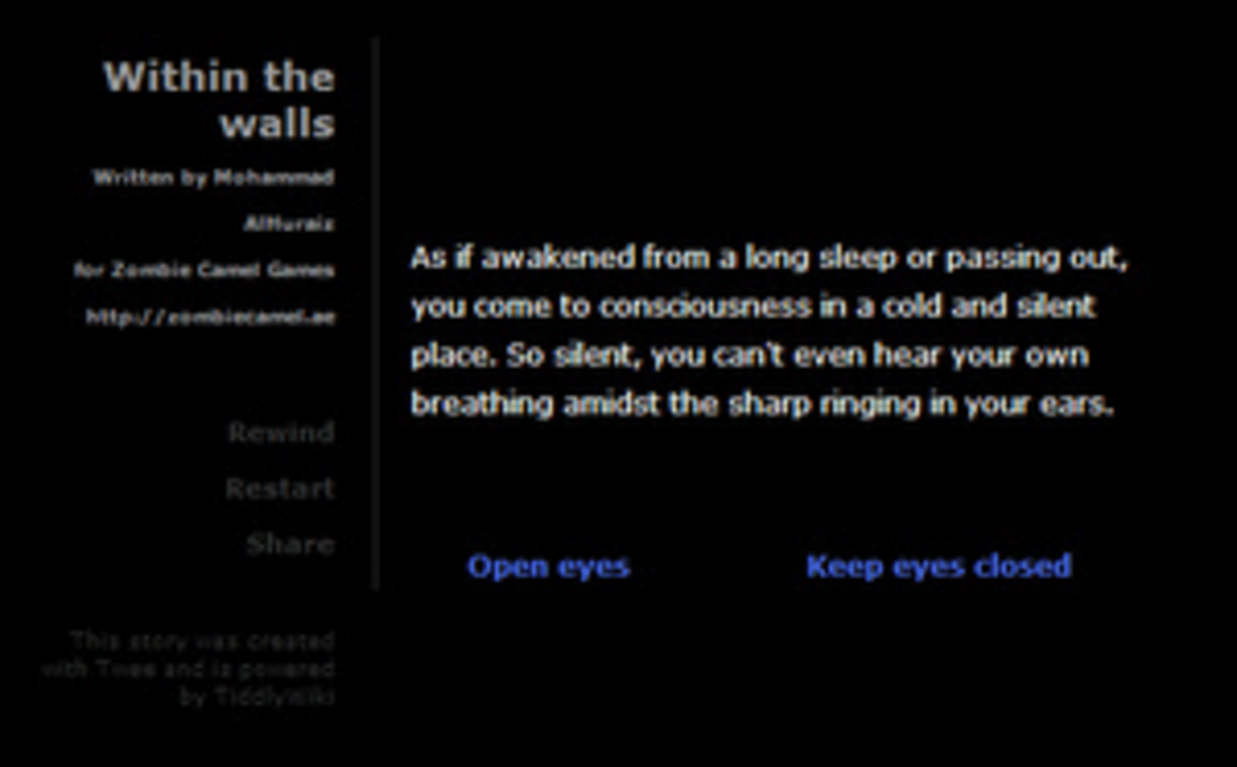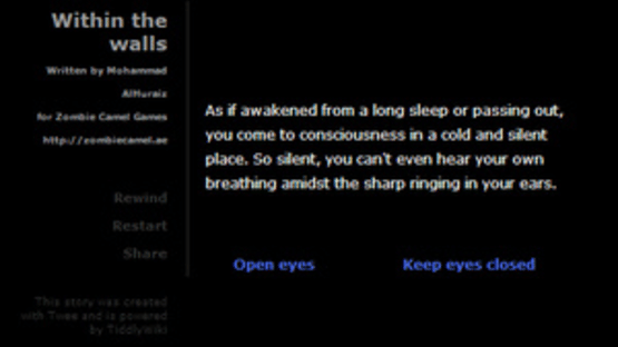 You're lost in a dark and strange place that defies logic, what makes it worse is that you're followed and preyed upon by unknown forces. Find your way through the catacombs of this horror text adventure as you struggle to survive with your life and your sanity intact.