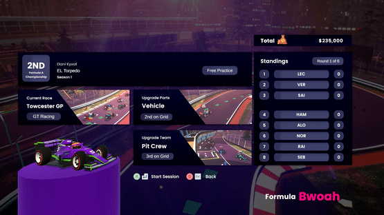 Formula Bwoah is a strategic arcade top down motorsport racing game where you not only drive the car, but also plan and react to dynamic racing events like changing weather, track conditions, tire degradation, etc.