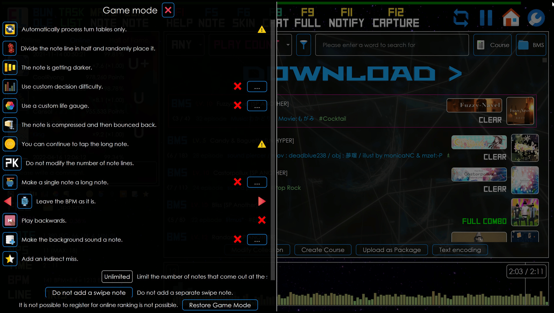 Qwilight is a free BMS/BMSON rhythm game that supports the most features among other rhythm games. It has various game mods, supporting various hardwares, rich online features, great accessibility to make no longer "BMS is difficult" And, it provides community-driven achievements and titles.