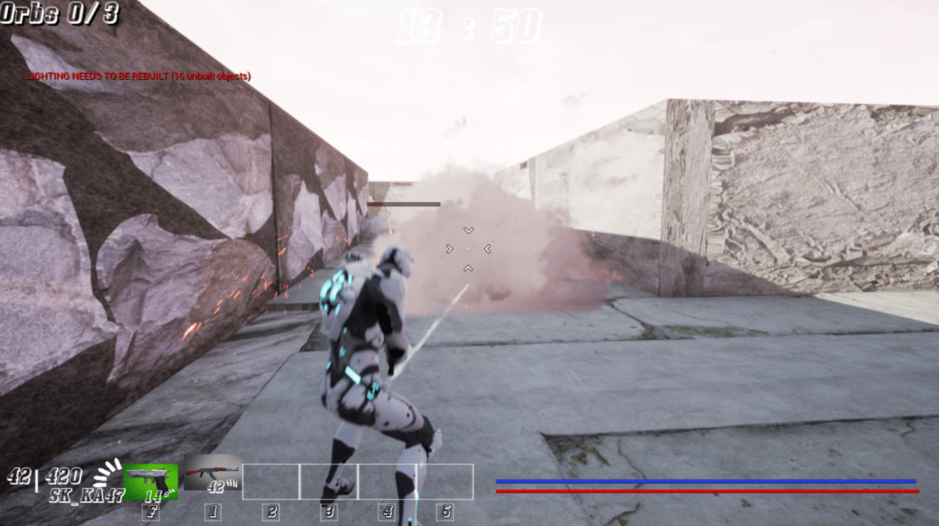 You start the game as a cyborg, lost in the world of the Maze. He will need to find and collect all the orbs that will unlock the door to his freedom. He will have fifteen minutes to do so, before he gets lost forever. Complete mazes as third-person shooter. Eliminated over 40 different enemies.
