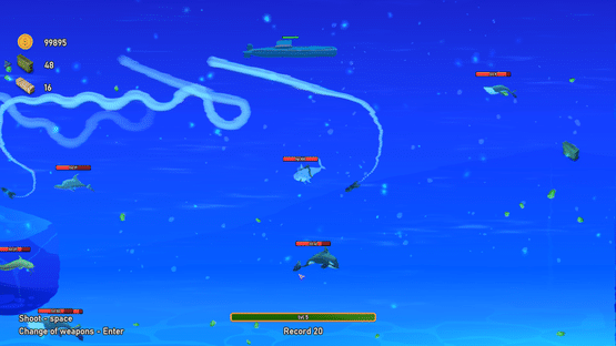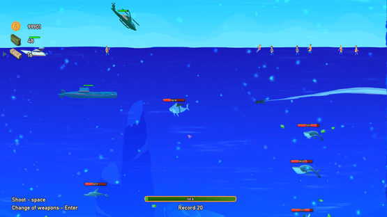 You have to control a crazed shark that lives in the depths of the ocean. Declare war on all living things, but be careful, the military is hunting you! Eat vacationers, break yachts, wreck ships, destroying submarines and helicopters!