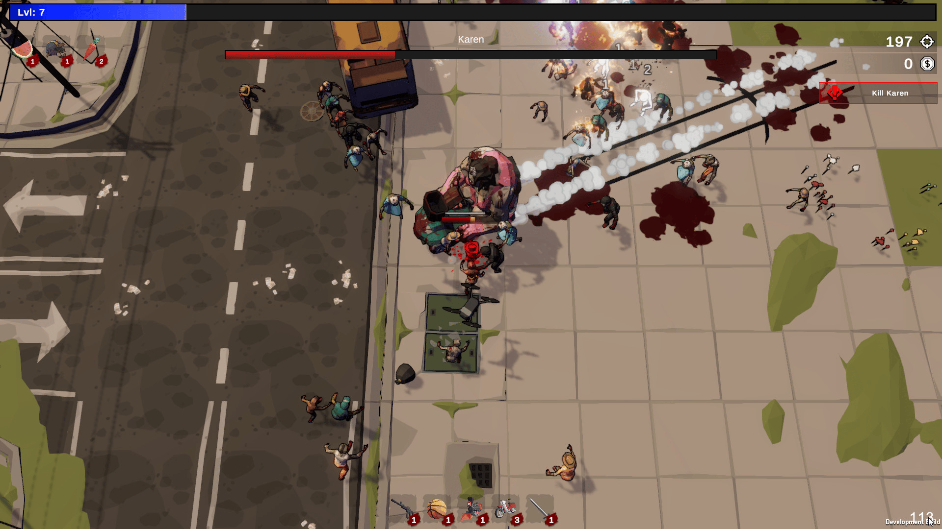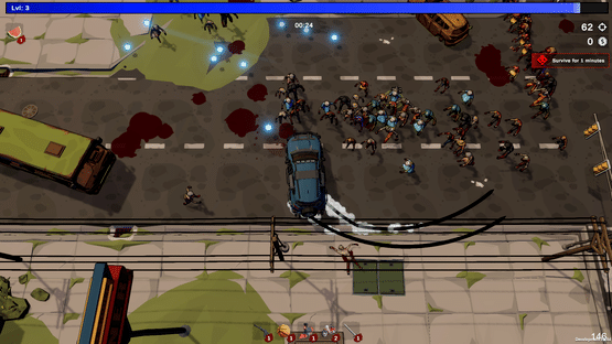 Kill thousands of zombies, collect loot, and become a lean mean killing machine! Battle and survive hordes of monsters in this high octane casual game with rogue-lite elements. Defeat bosses, hot-wire cars and stack power-ups to infinity. How long will you survive?