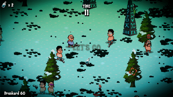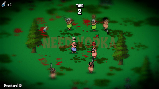 "Drunk Games" is a 2D top down shooter with Battle Royal elements. The player, surrounded by other characters, must collect as many bottles as possible, knocking them out of other drunkards!