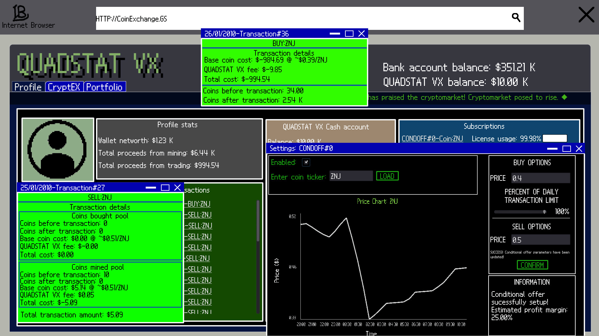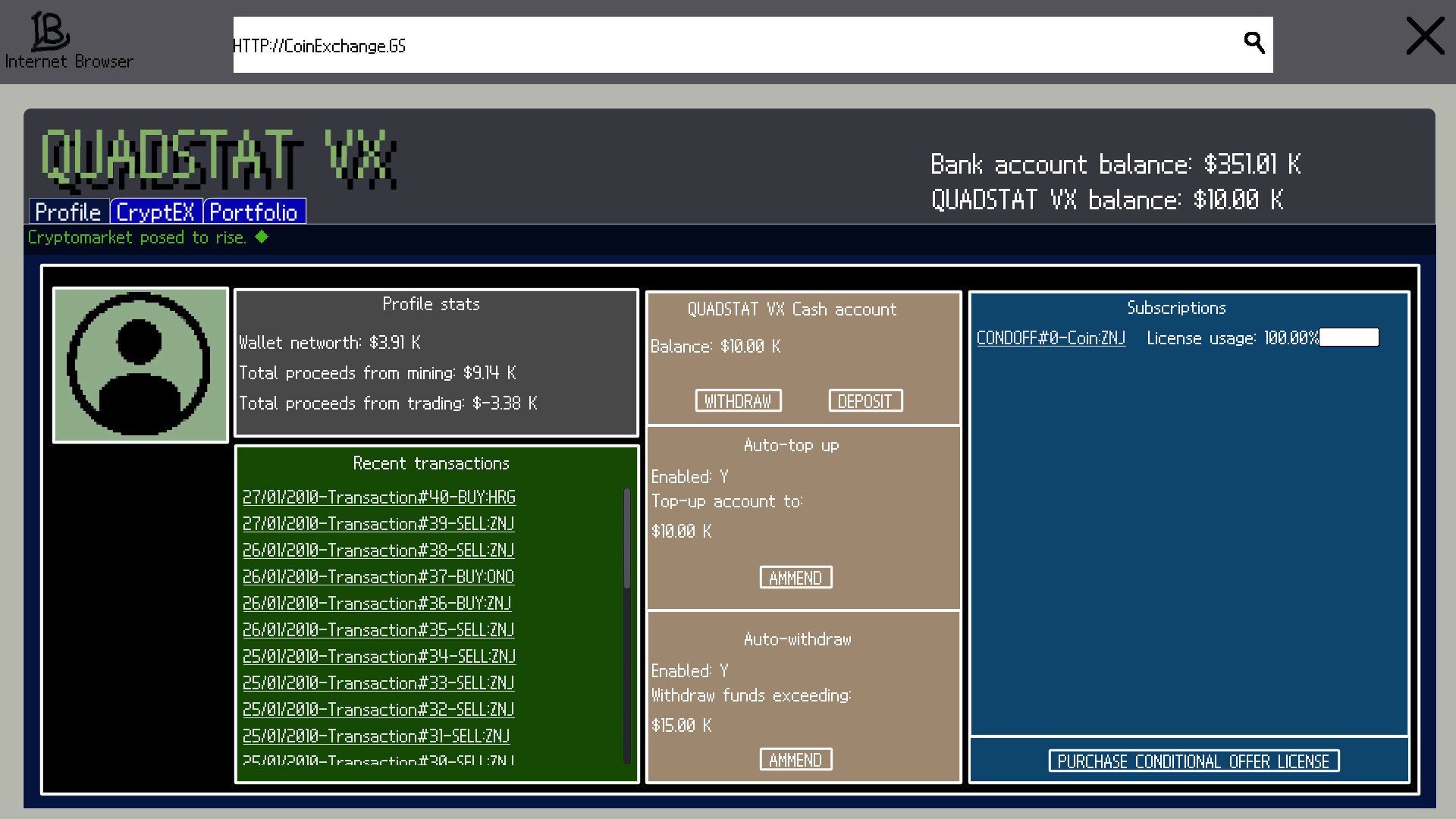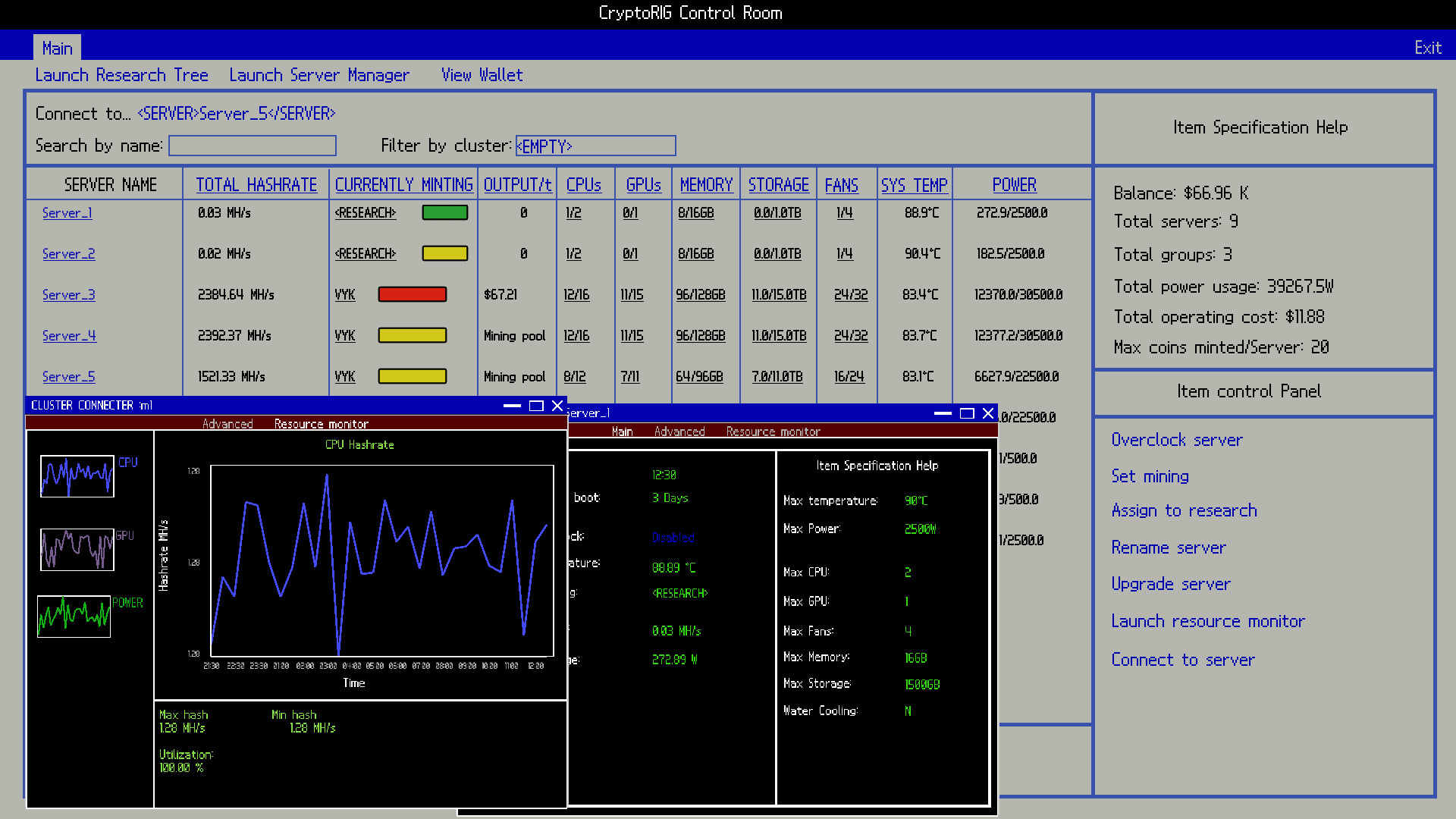 CryptoRIG is a semi-idle server management game focussed on cryptocurrency mining and trading.