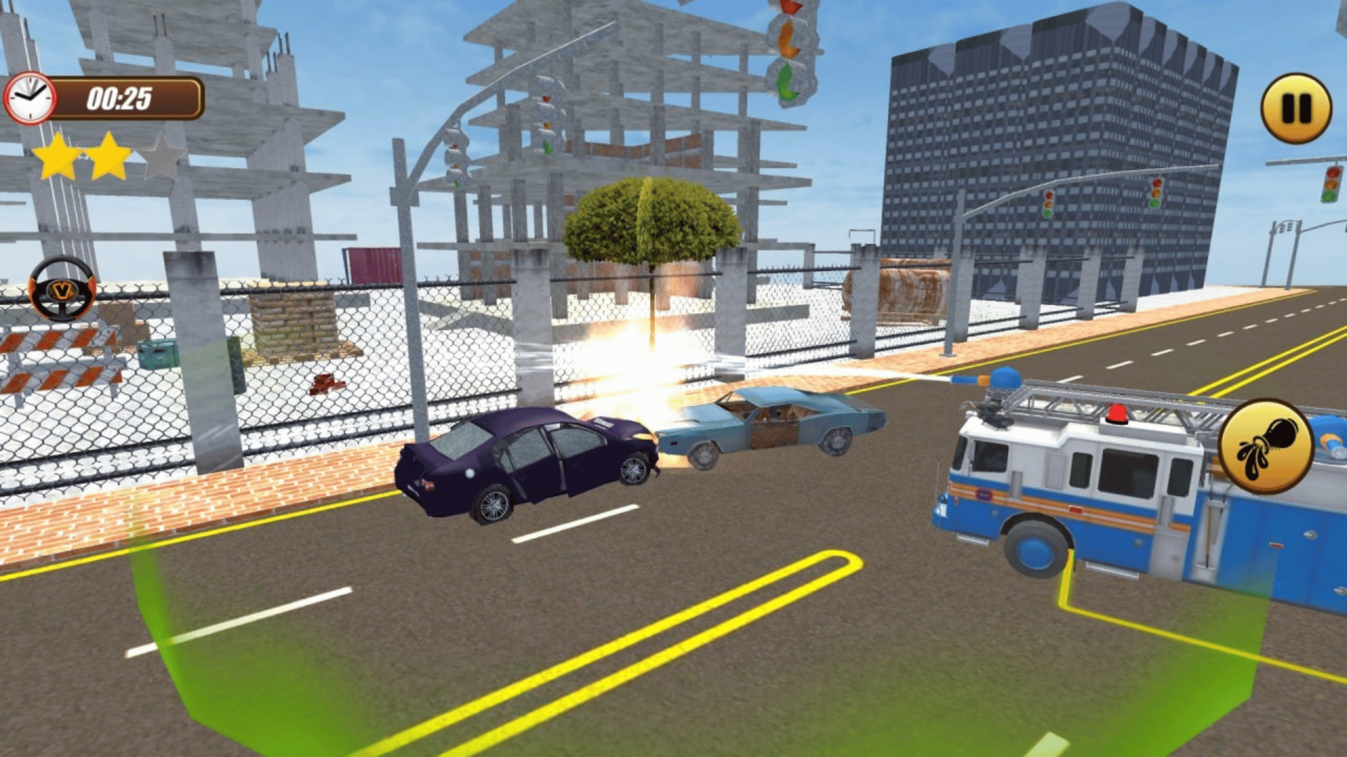 Welcome in the simultion game Fire Truck Simulator where you should keep the city quiet. As a firefighter, you need to get on time to put out all the fires in the city