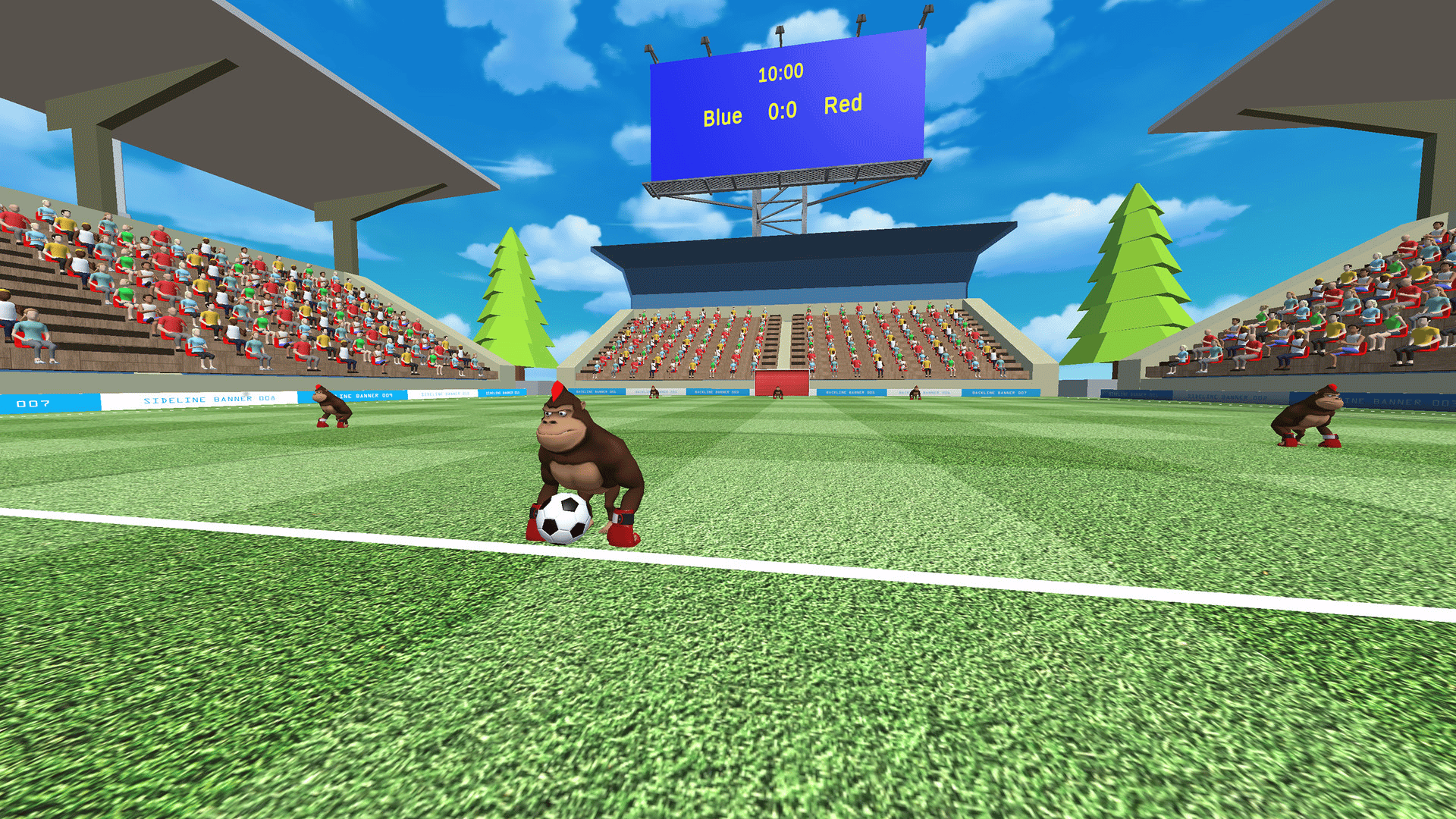 A new type of VR sports competitive game. Your can play football (soccer) as a gorilla! The locomotion is inspired by gorilla tag. You can run, jump, and hit the ball using only your hands. You can not only play with bots, but also play with other players.