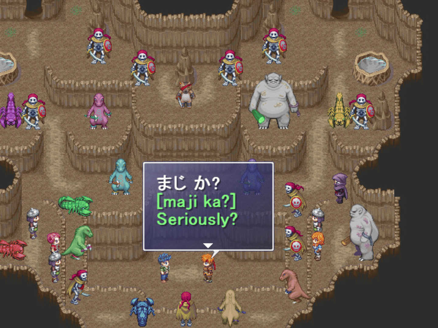 Dialogue changes from English to Japanese as you learn and progress in this comedic RPG backed by professional Japanese voice acting. This is a full introductory Japanese course and adventure all in one. Master hiragana, basic grammar, and over 240 common words used in anime!