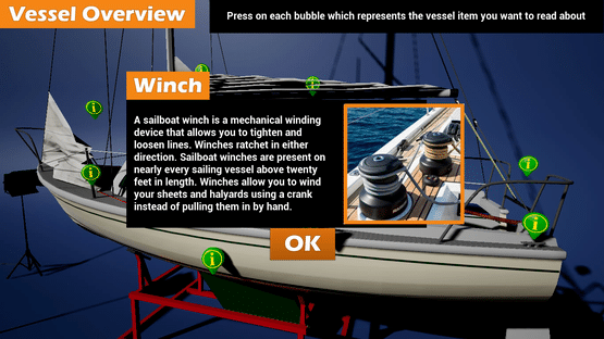 This sailing simulator applies actual physics to simulate the behavior of a sailing vessel. This means you can actually capsize or sink a vessel if you are not careful. In some cases the simulator can even reproduce unpredictable results based on your actions, selected parameters and conditions.