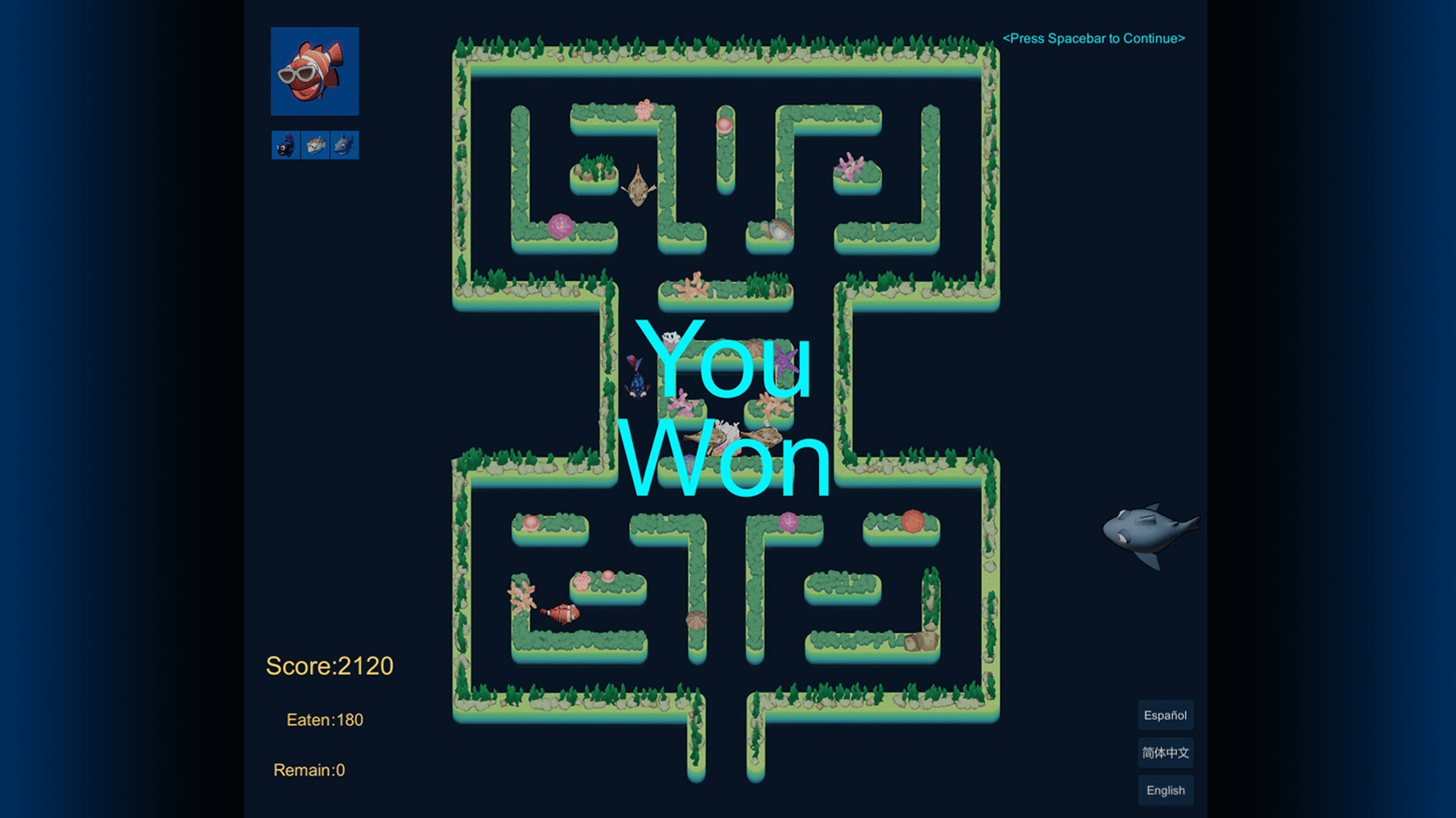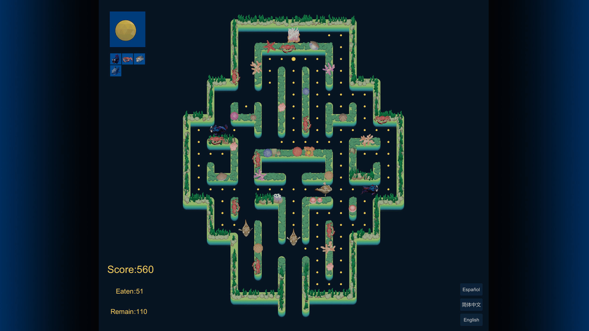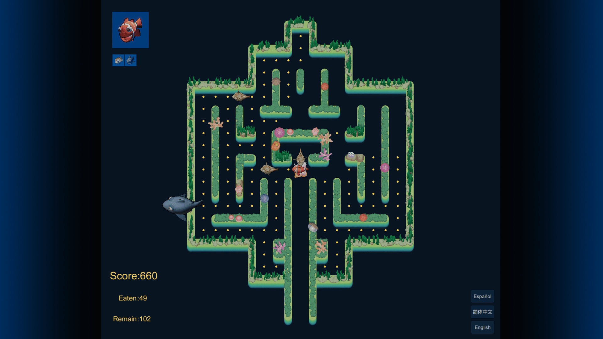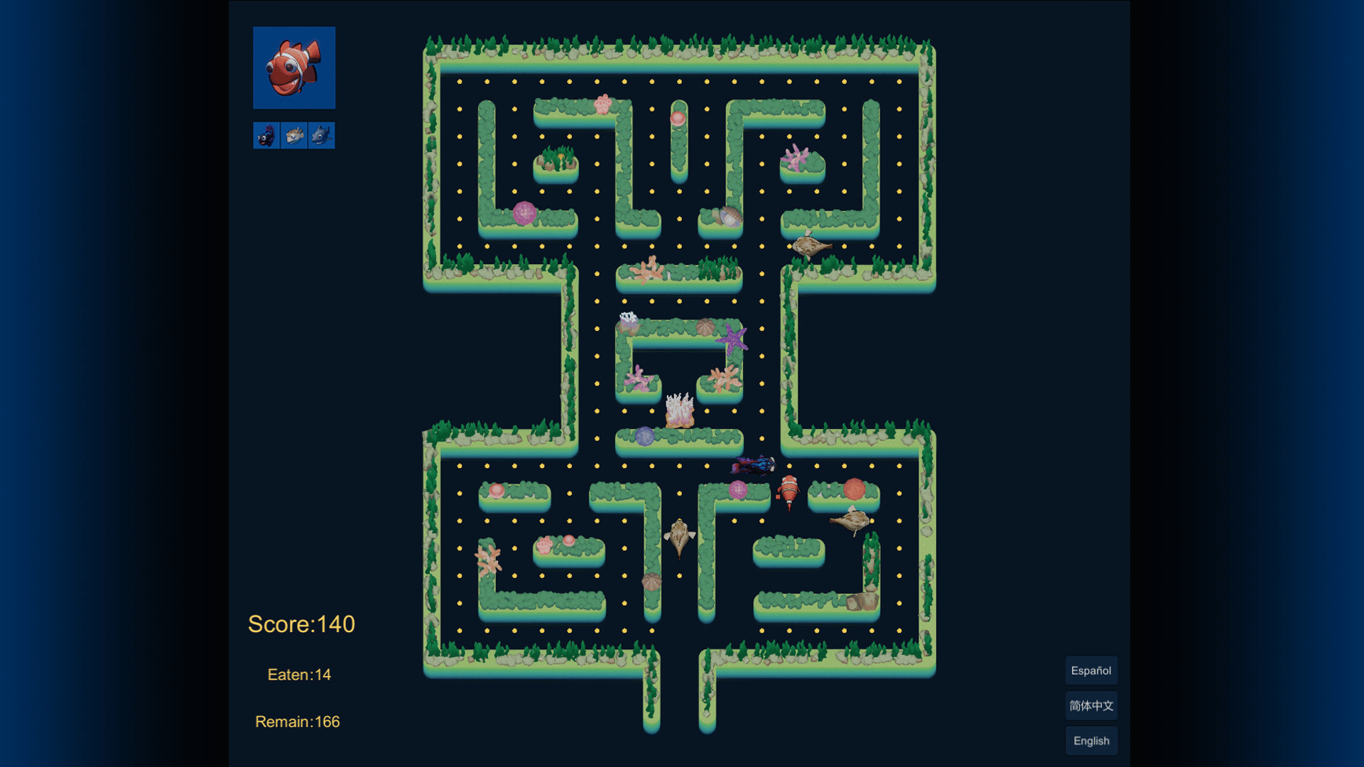 Help a tropical fish fight off ocean predators, survive in coral mazes, and find a way to eat all dots!