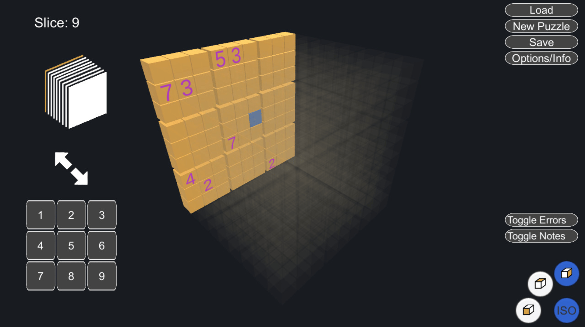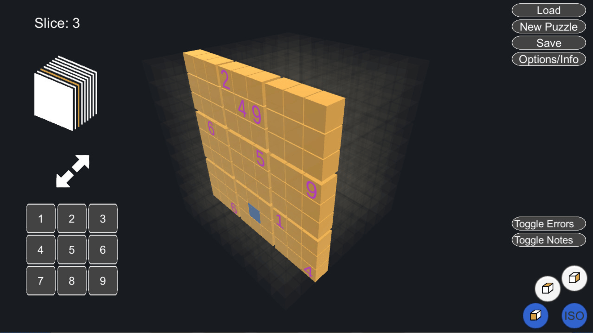 Randomly Generated 3 dimensional sudoku puzzle game.