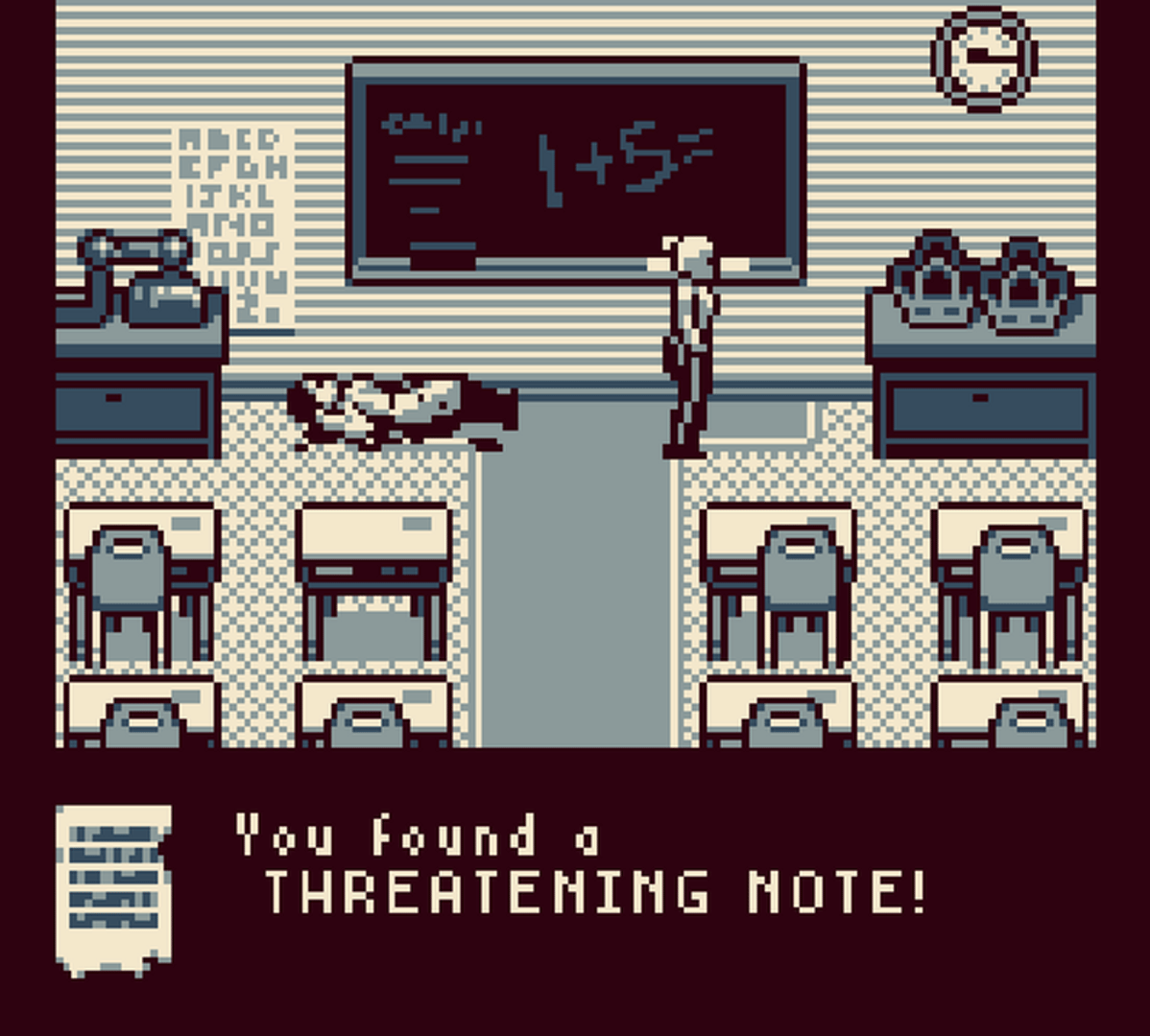 A story-driven horror game for Game Boy. Investigate a teacher's murder and deal with the effects of old age. The game features multiple endings based on decisions you make along the way.