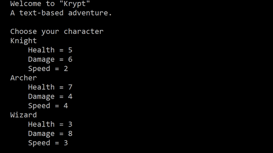 Krypt is an old-school text adventure filled with excitement and peril. Fight monsters, make choices, and travel through forests and mountains to defeat the evil King Krypt in this epic fantasy tale. But watch out as you try to discover all the paths, because not every choice ends in victory.