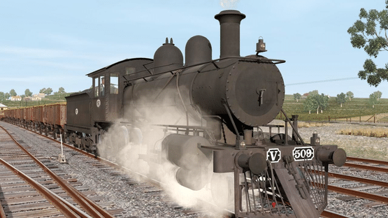Drive the Victorian Railways V class steam locomotive, painted in a freelance black livery with 3 levels of weathering.