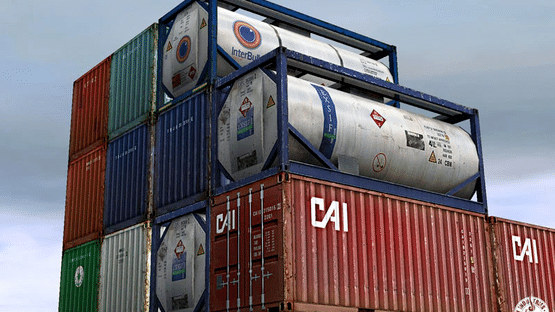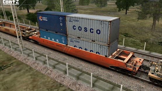 The Contz Pack Basic Edition featurees a set of 20ft and 40ft dry van shipping containers in a variety of paint schemes, along with three versions of the X2K double stack container well wagons.
