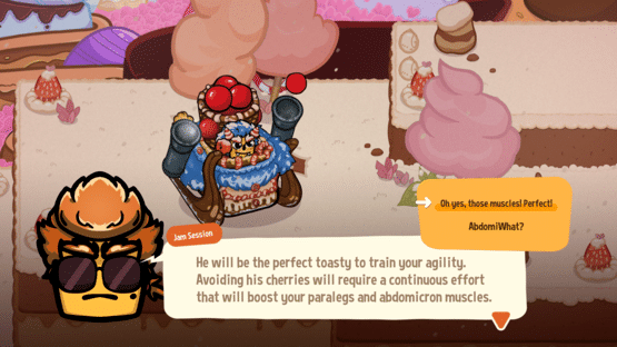 In Pardon My French Toast, you play as a Toasty (a talking slice of brioche) who dreams of participating in the new edition of the bread wrestling competition. To be physically up to the challenge, he decides to follow a training program organized by the previous champion of the discipline, which will take him all over the world and make him meet a bunch of wacky weirdos. Pardon My French Toast is an adventure / platform game in 2D top view in which the player explores different worlds, solves puzzles and meets a whole bunch of fun characters. Bread wrestling is a... special sport. We will introduce the discipline later.