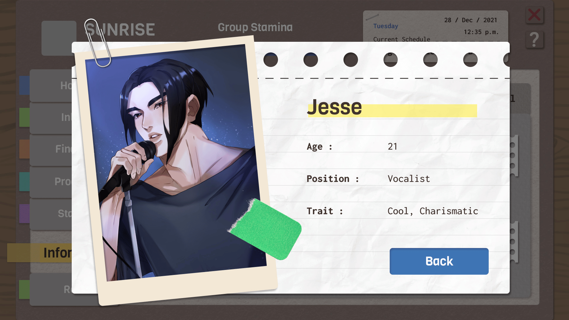A new star is born! Favour Toys B.V. Entertainment wants to release a new 4-member Band. You have to choose the trainees who you think are ready to make their debut to the public and make a new history. How you manage the band will determine their future.