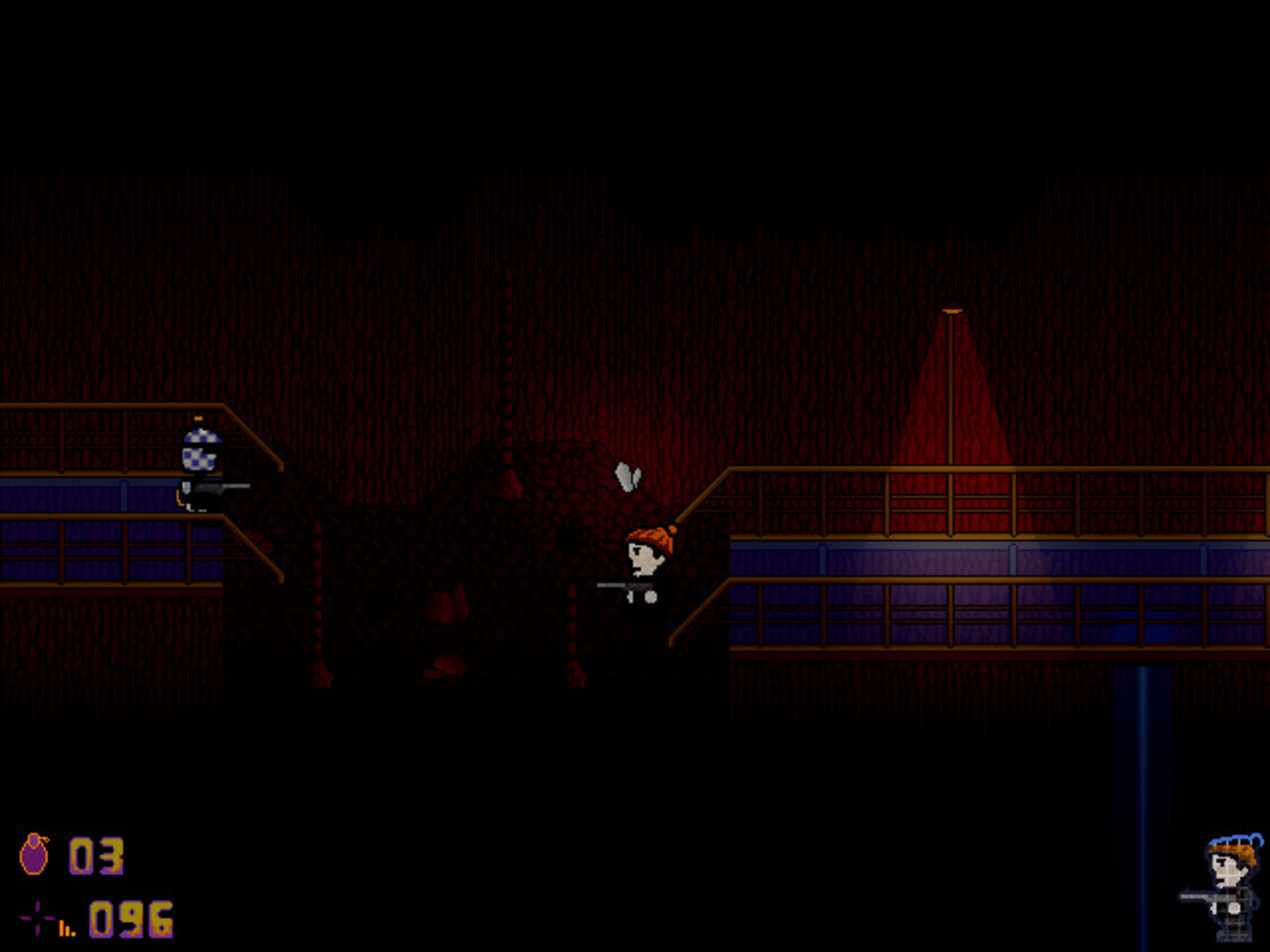 Jim The Spy is a sort of metroidvania 2D third-person shooter game. The player must complete a list of objectives in various levels filled with robots.