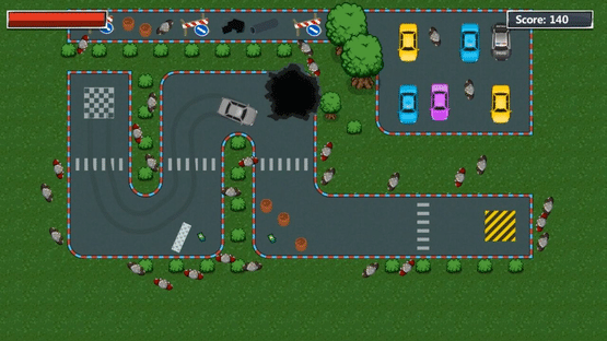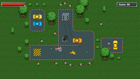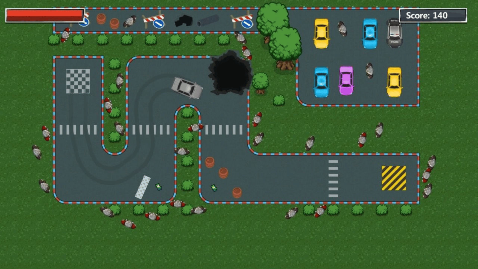 "Inexperienced Driver" is a top-down arcade driving game. The player has to drive from point A to point B and, if possible, collect all the banknotes on the road while avoiding obstacles.