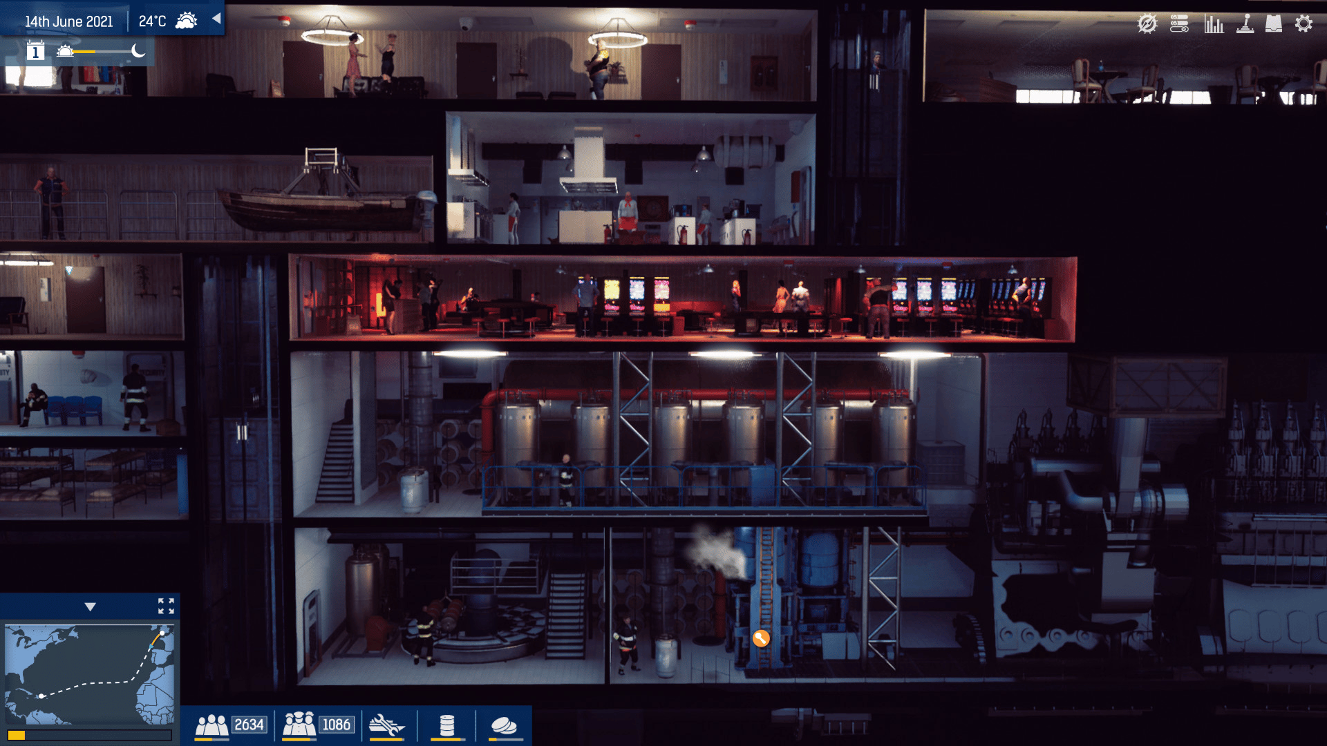 Manage your own Cruise Ship! Maintain your vessel and sell tickets to the wealthiest of passengers. Issue orders to your crew and keep their morale high. Choose the layout of your ship and the kind of amenities you want to offer. Keep the prices right, passengers satisfied, and your wallet full!
