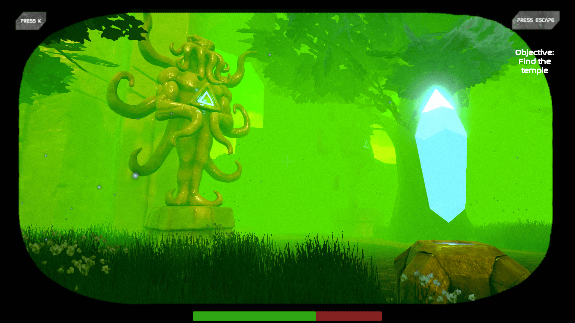 A sci-fi, survival horror and first-person game. The player will encounter numerous of creatures and characters that involves a mystery to be unraveled on all worlds, finding clues and going through portals. The player progresses through exploration and may die if they fail to avoid the monsters.