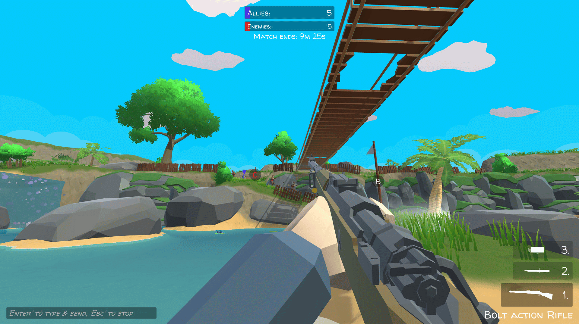 The Riflemen is a fun, fast-paced low poly FPS game where matches are short and full of action! All players start with bolt-action rifles & knives that they don't need to reload. Players can customize their weapons & characters to get the look that they want!