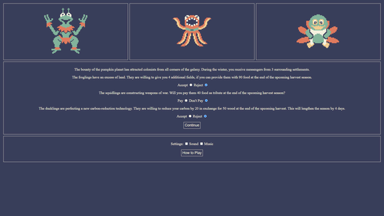 A turn-based strategy game about managing the first human colony on the pumpkin planet.