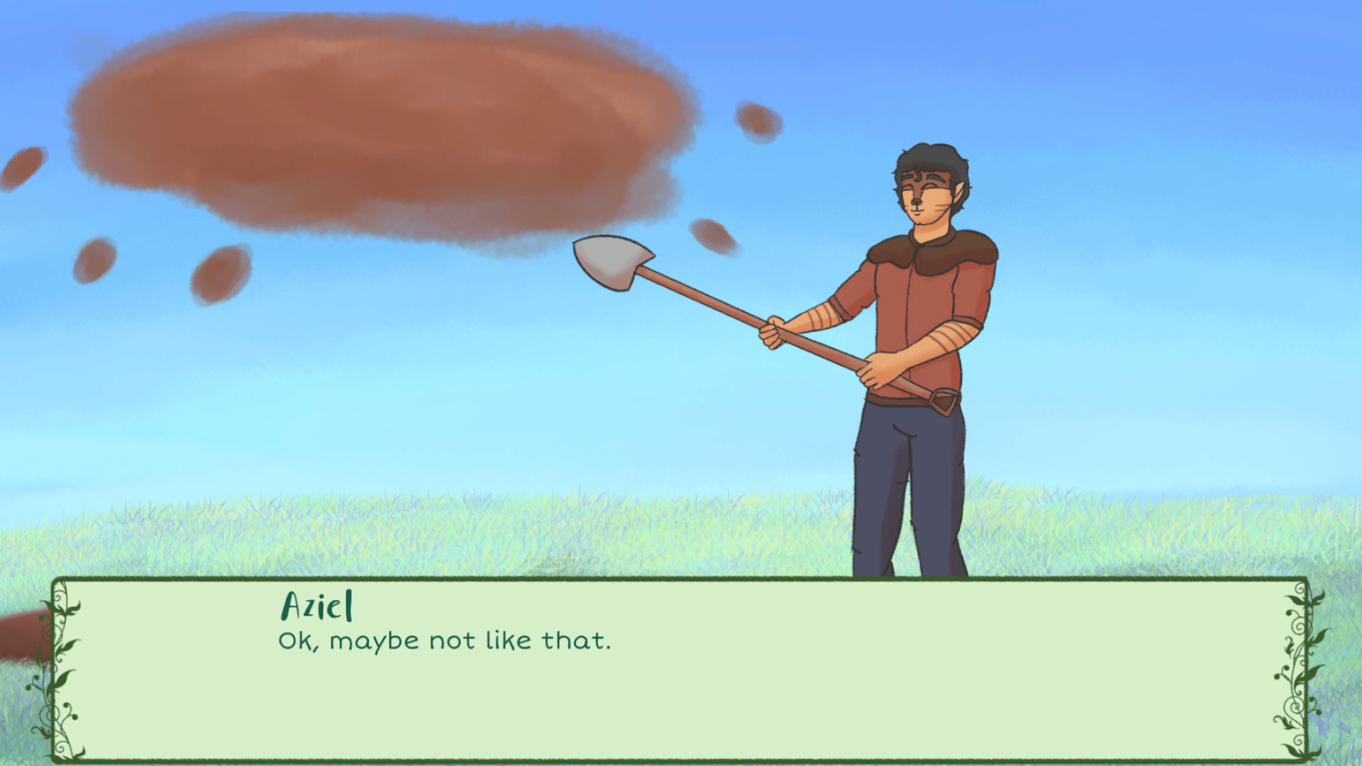 By the Vine is a Christian-based Visual Novel. The story follows a young adult named Calum, who has to live on his best friend's farm after burning down his house. What hijinks will ensue as Calum adjust to his new life on the farm?