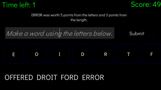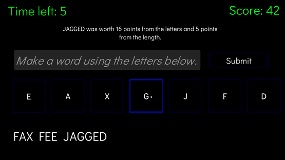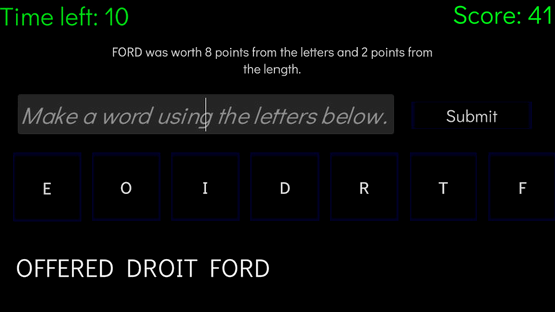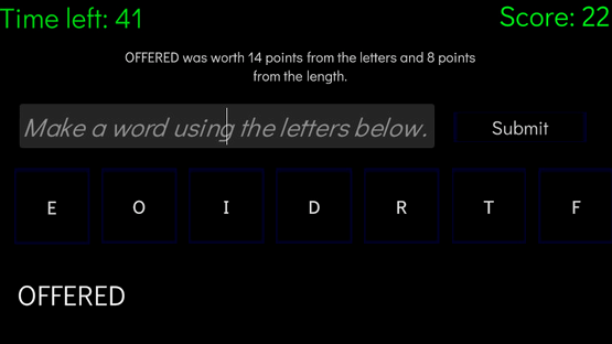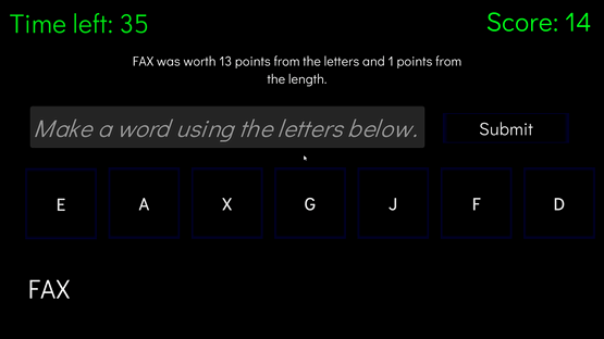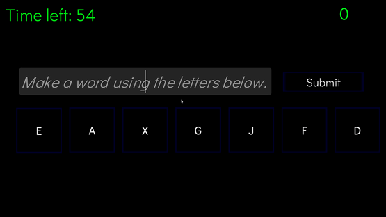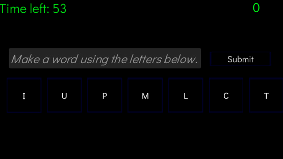 Create as many words long words as possible within a minute using 7 random letters.