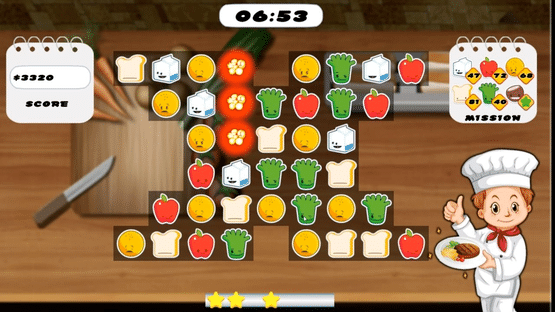 "Cutie Tutti Frutti" is a game based on "3 in a row" mechanics. The goal of match-3 puzzles is to make groups, lines and rows of 3 or more identical tiles.