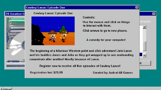 Relive the bygone era of CD-ROM shareware! As a recently-contracted games analyst, you are tasked by the CEO of Best Value Games to make sure the games set to be included in their upcoming release are up to code. How much you get paid depends on how much ground you cover!