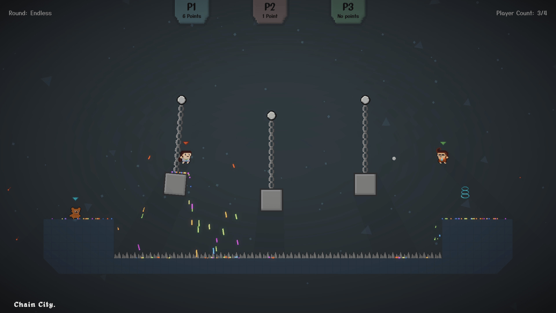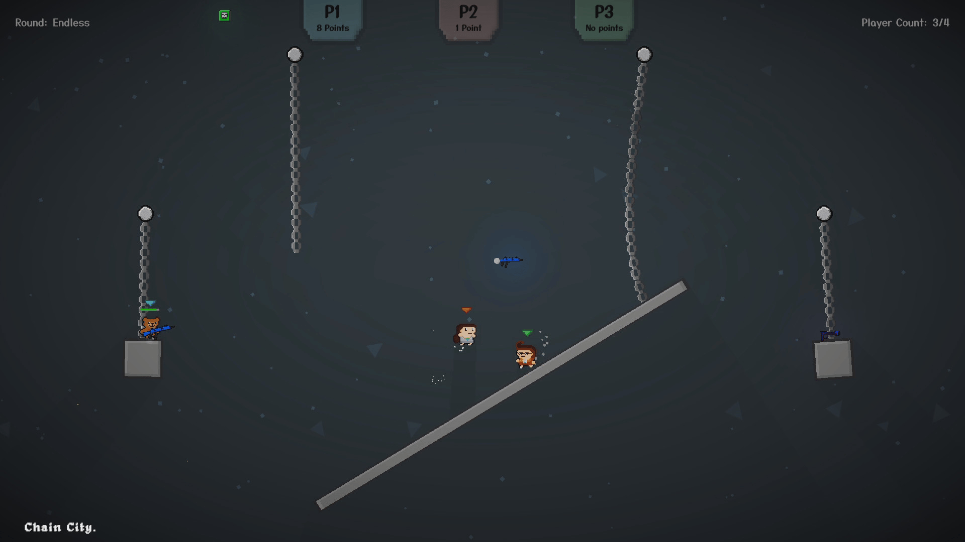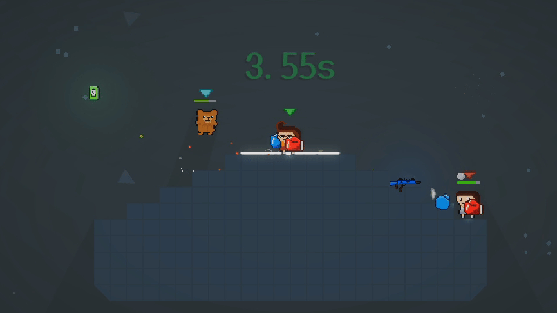 An action-based 2D platform fighter with the use of long-ranged combat and the ability to battle your friends. With a series of unique game modes to brawl out in multiplayer, acquire a series of weapons throughout a variety of stages to fend off your opponents and come out victorious.